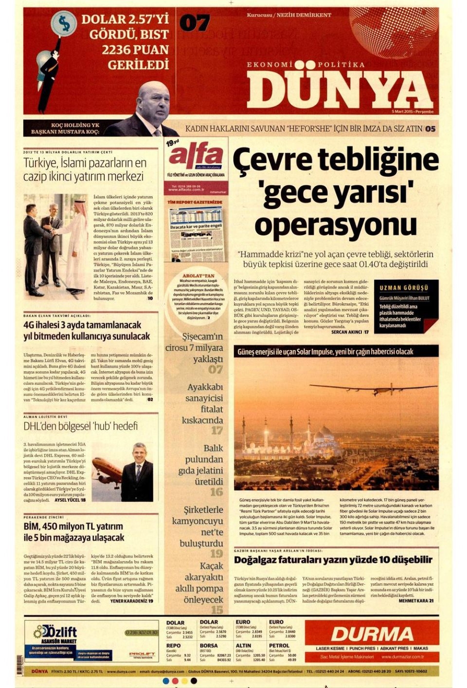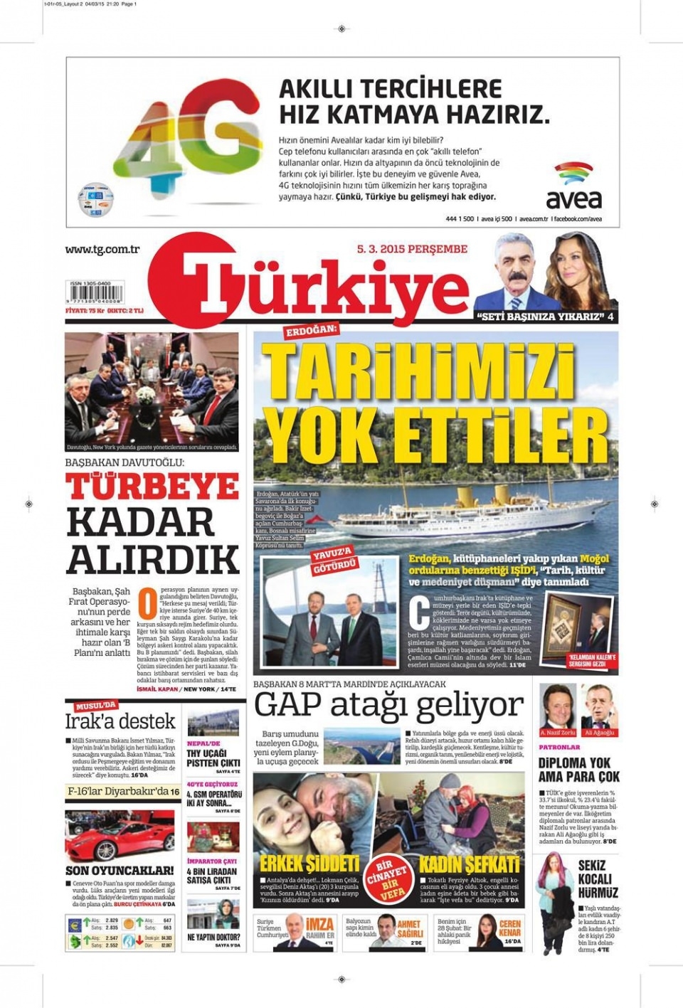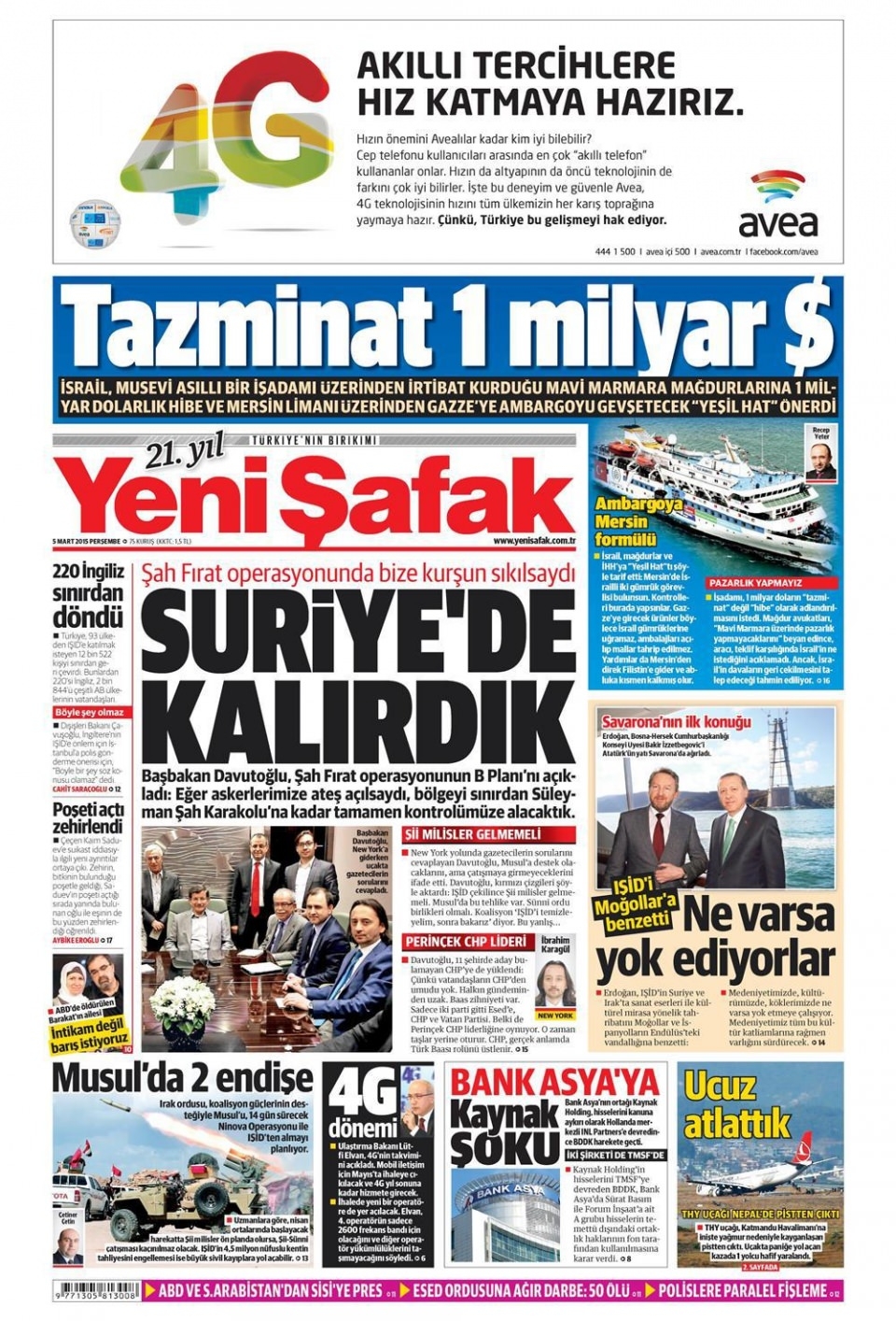 5 Mart 2015 gazete manşetleri