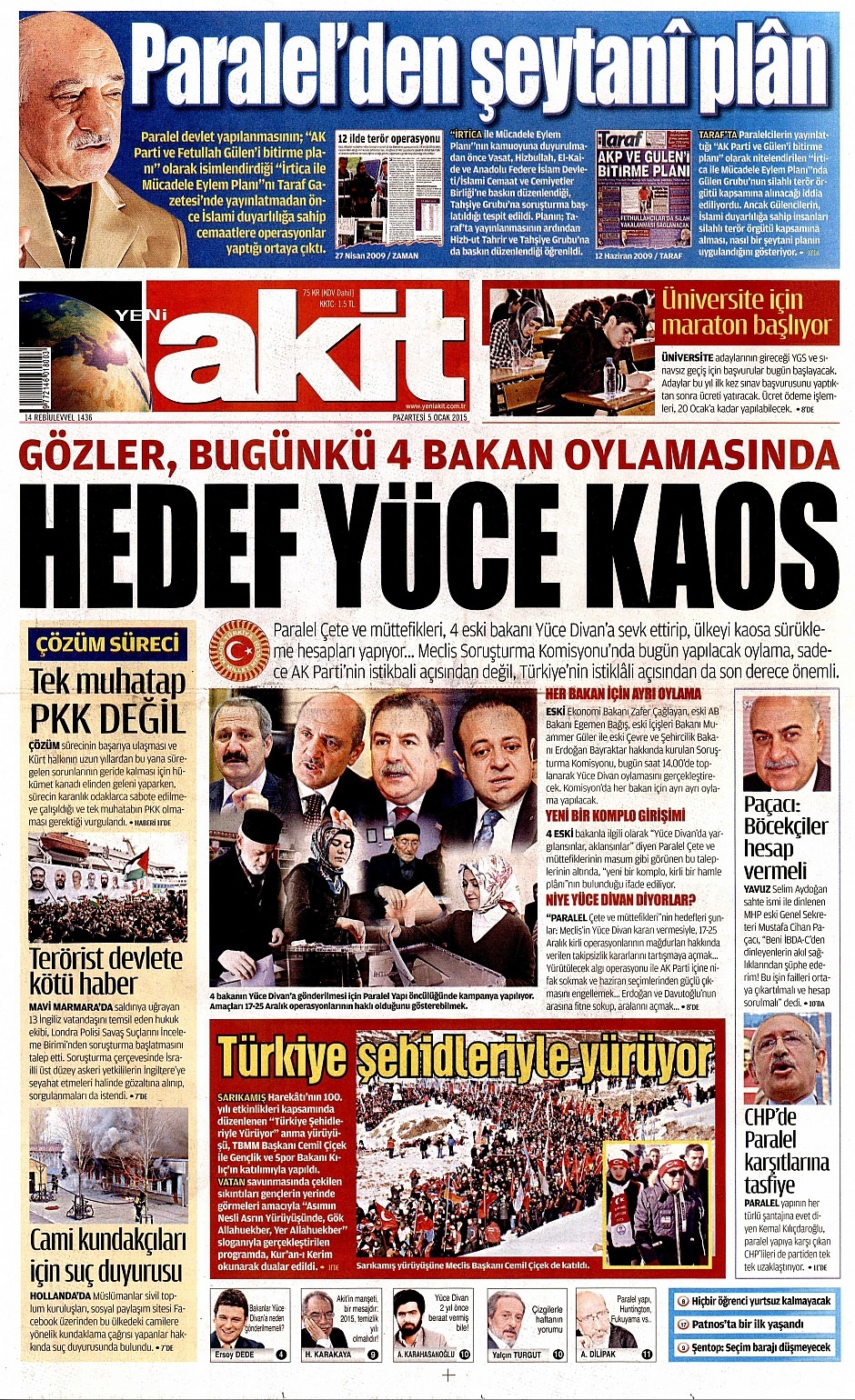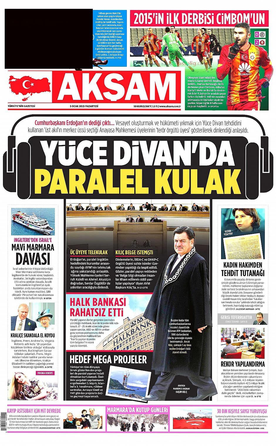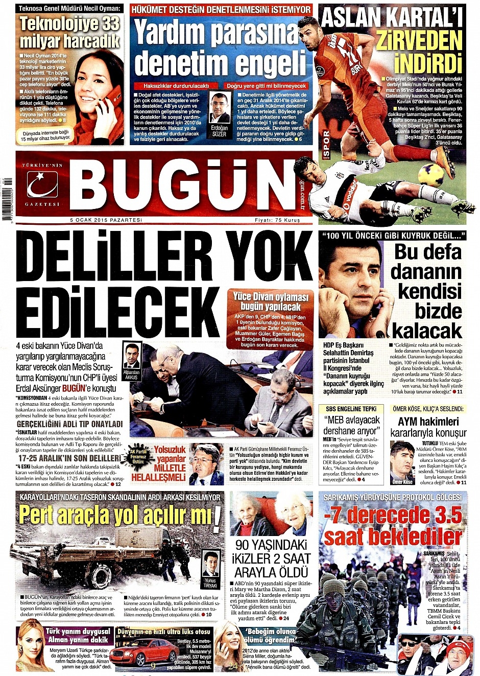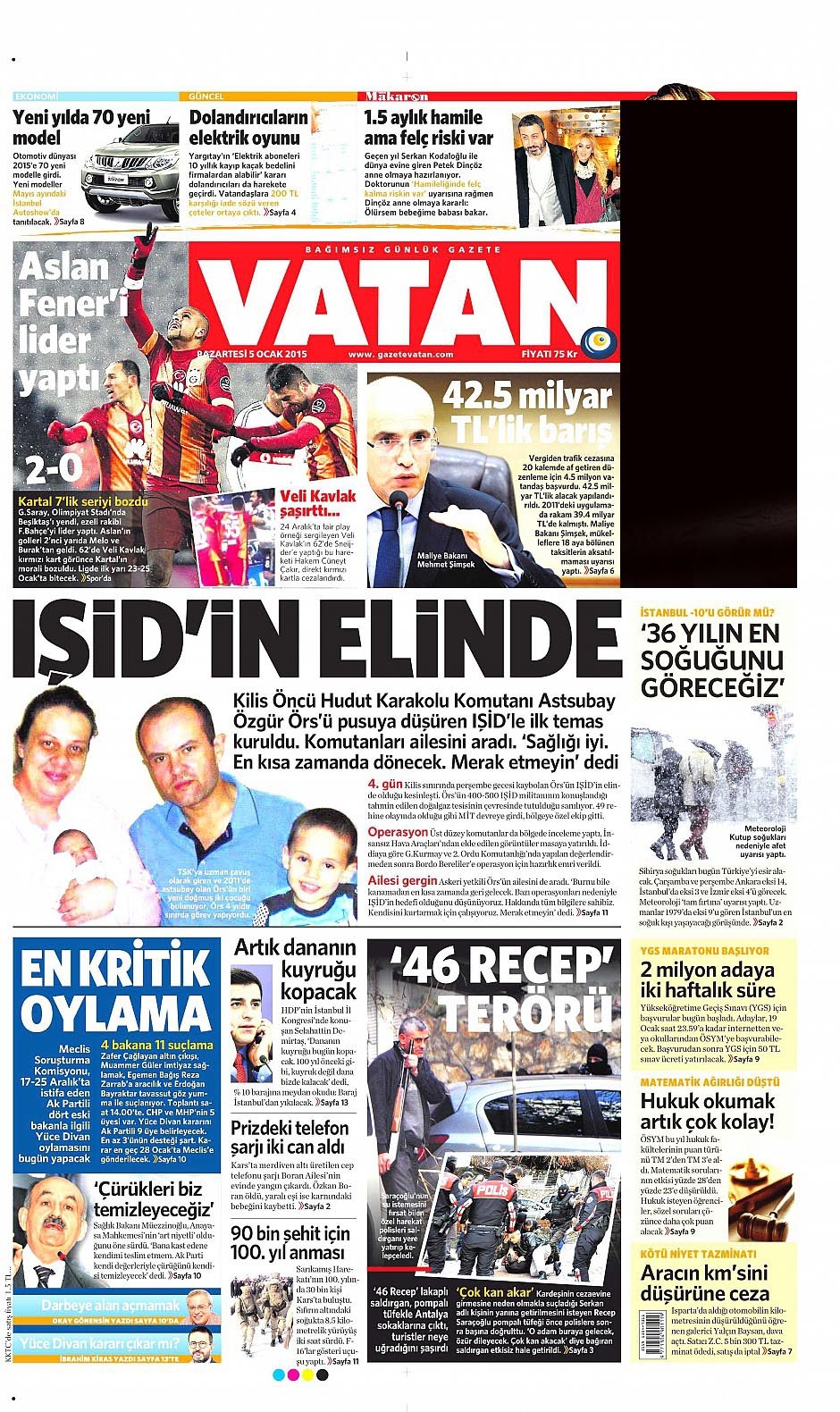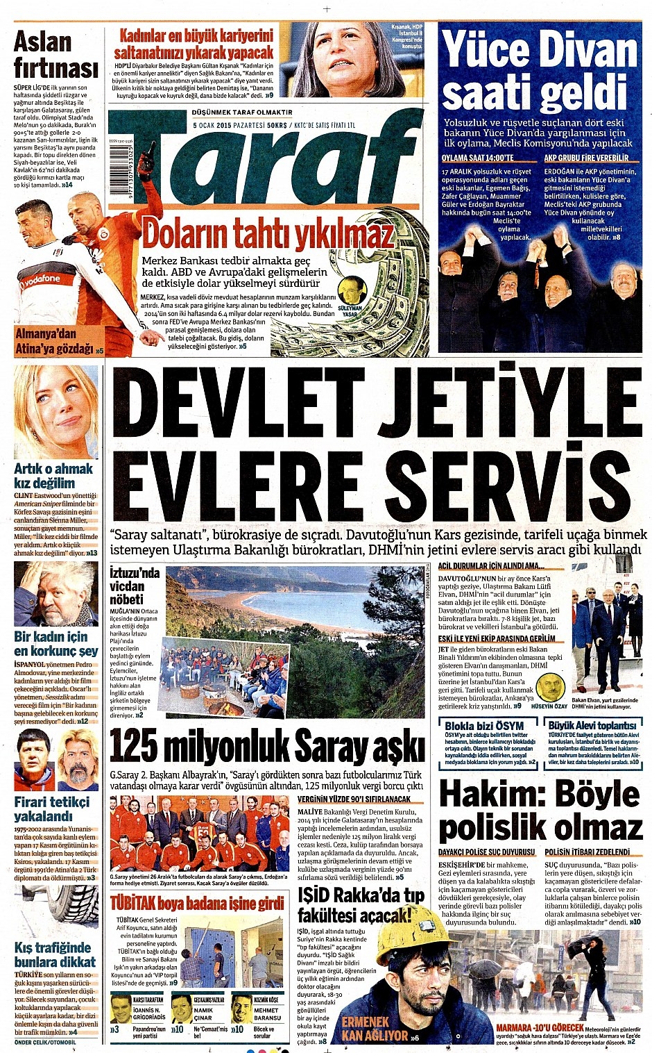 5 Ocak 2015 gazete manşetleri