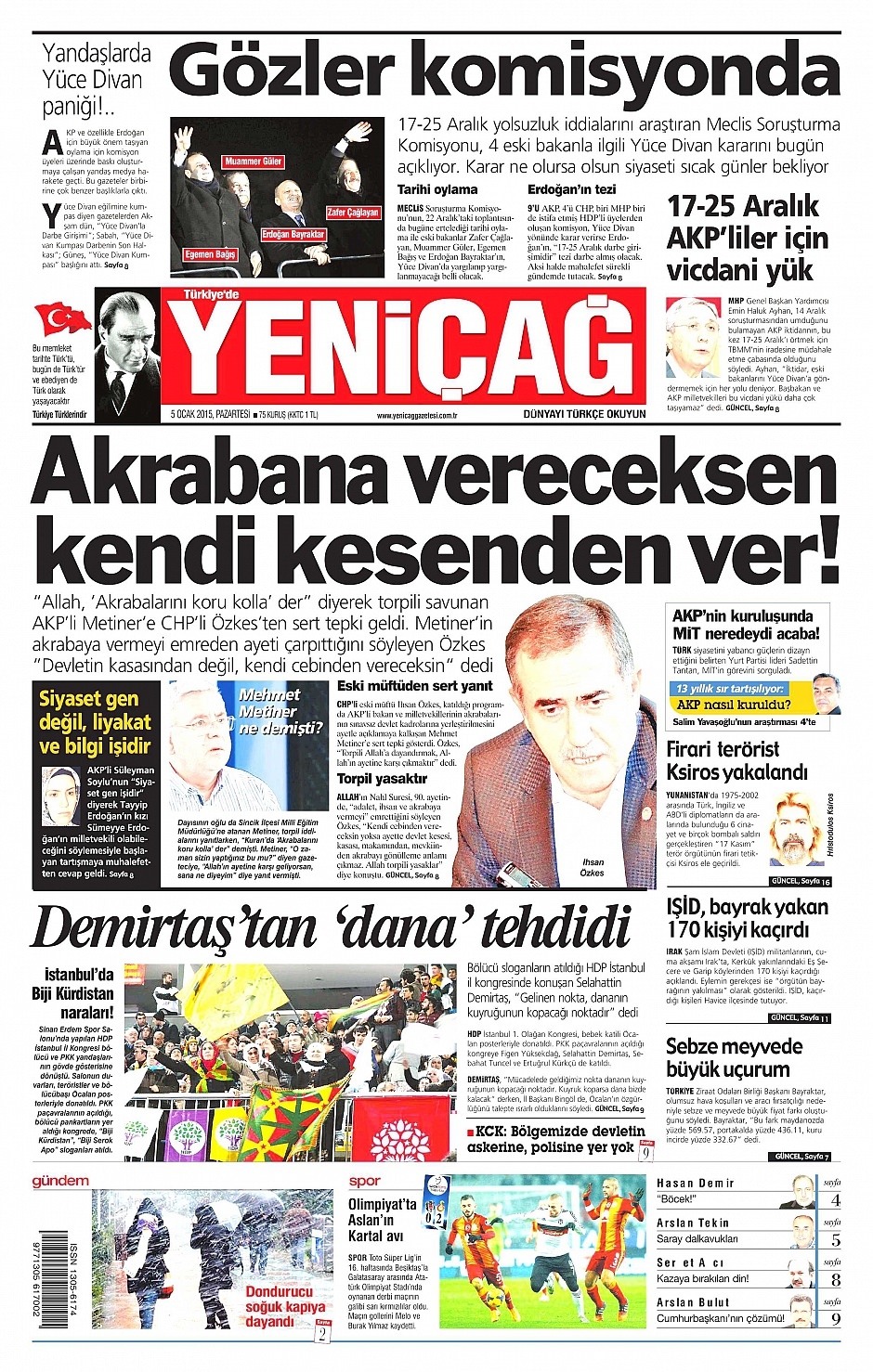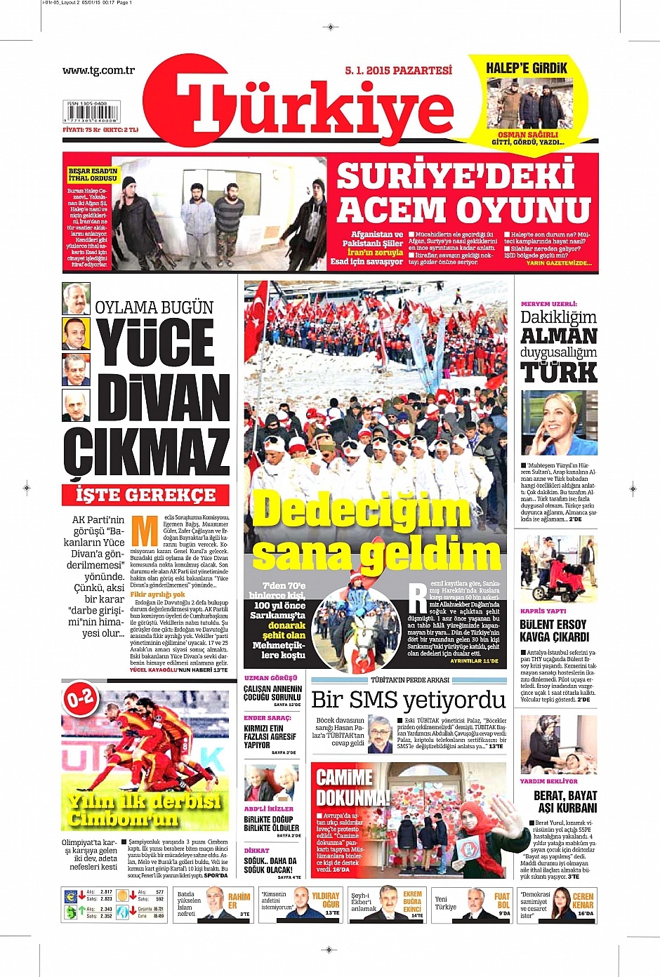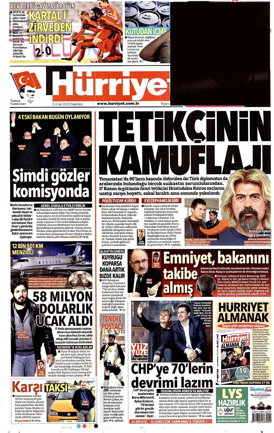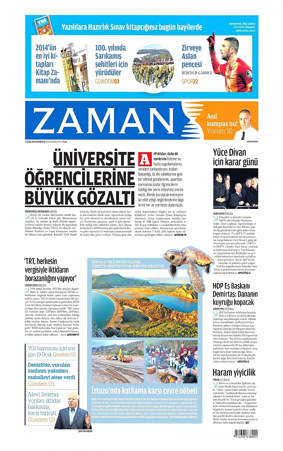 5 Ocak 2015 gazete manşetleri