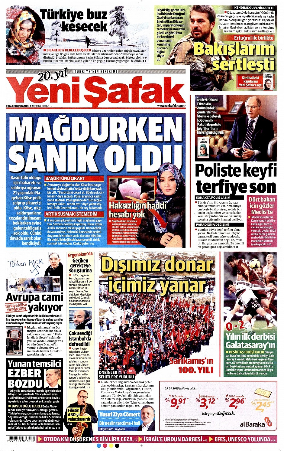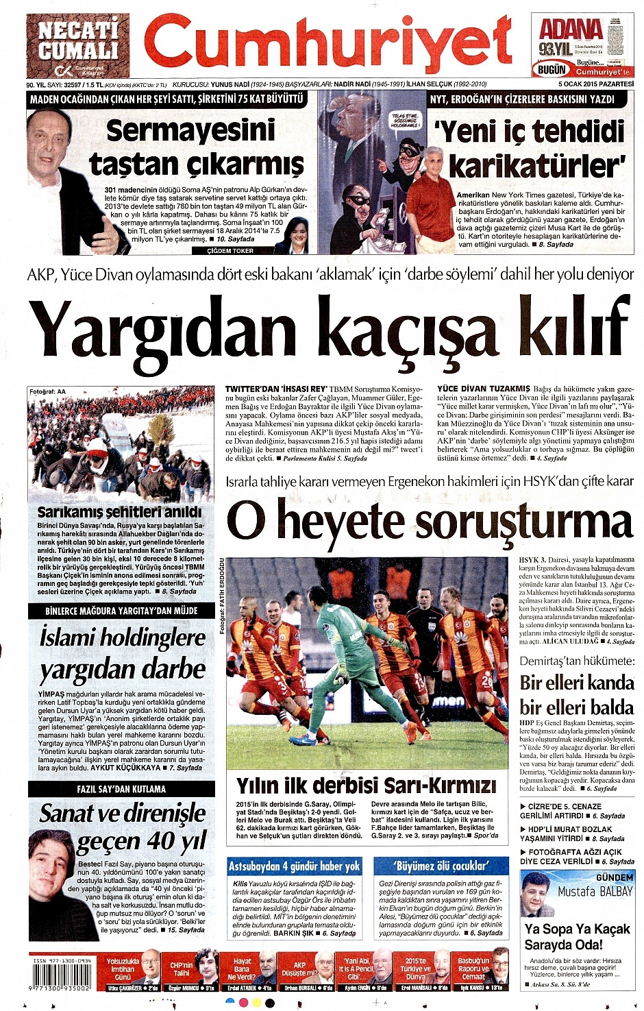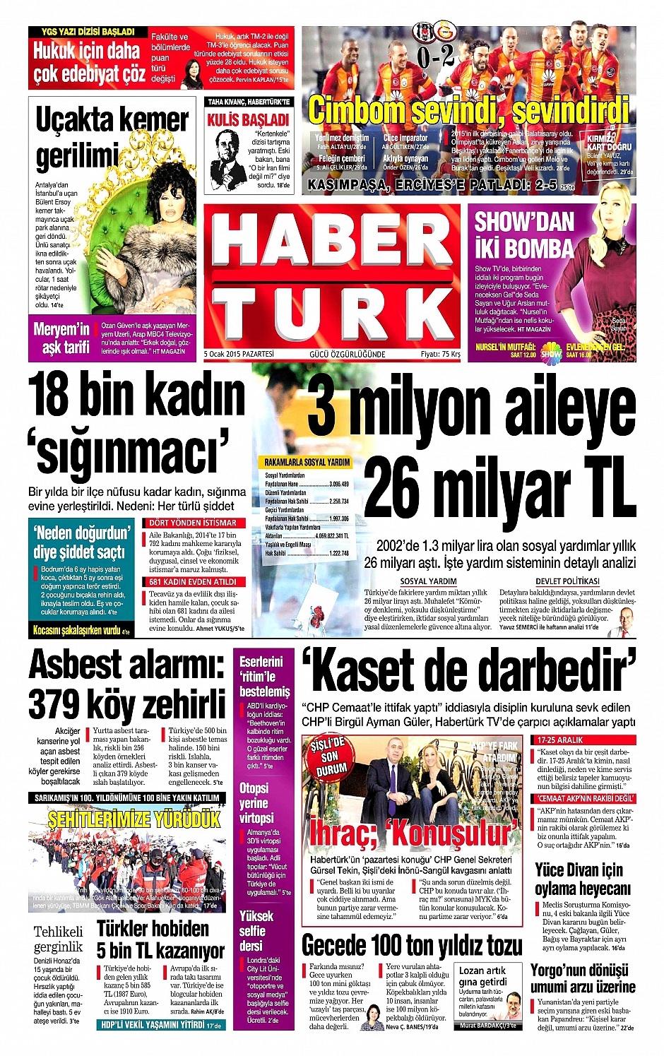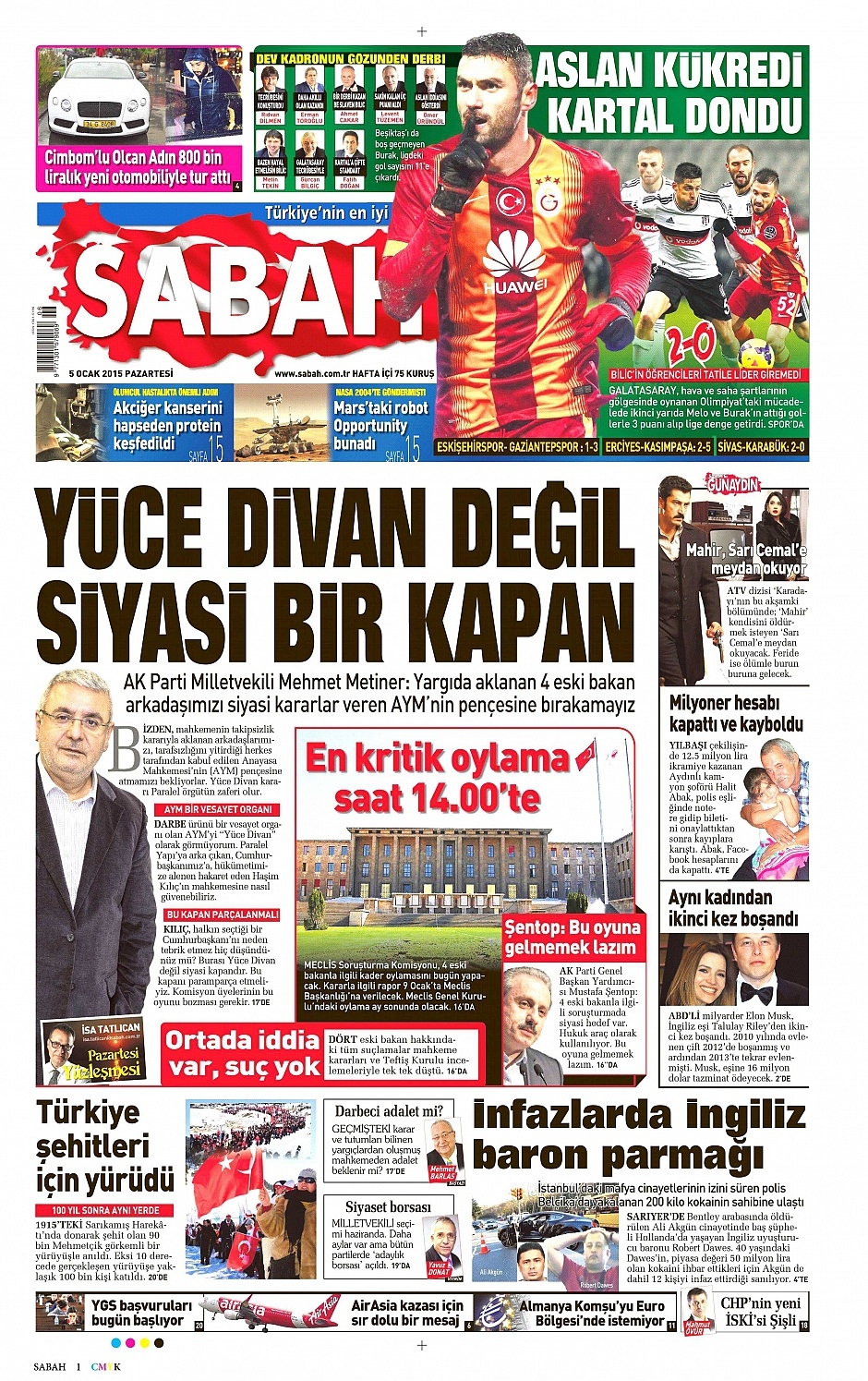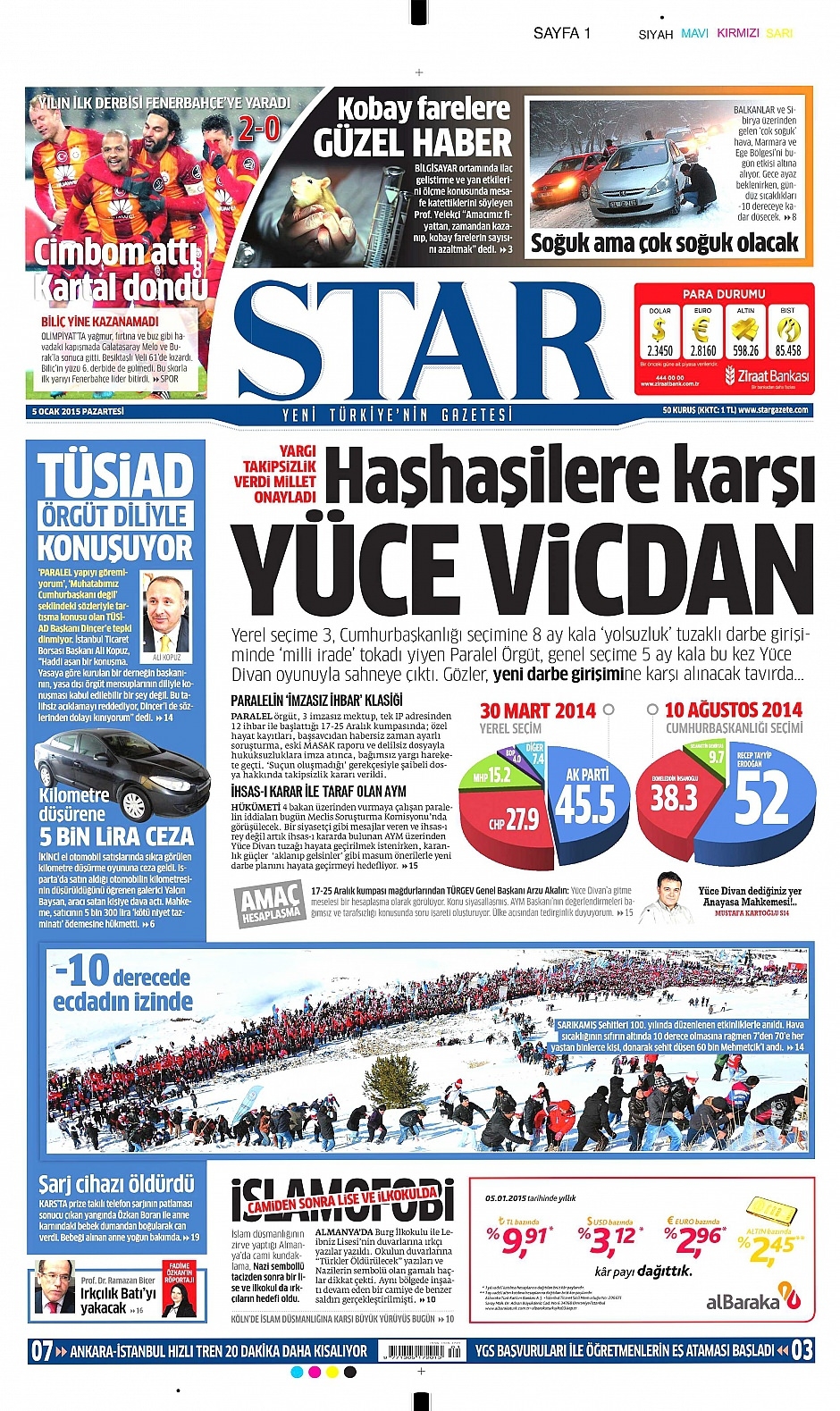 5 Ocak 2015 gazete manşetleri