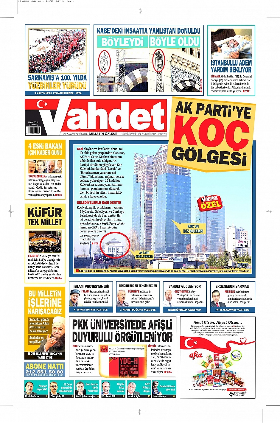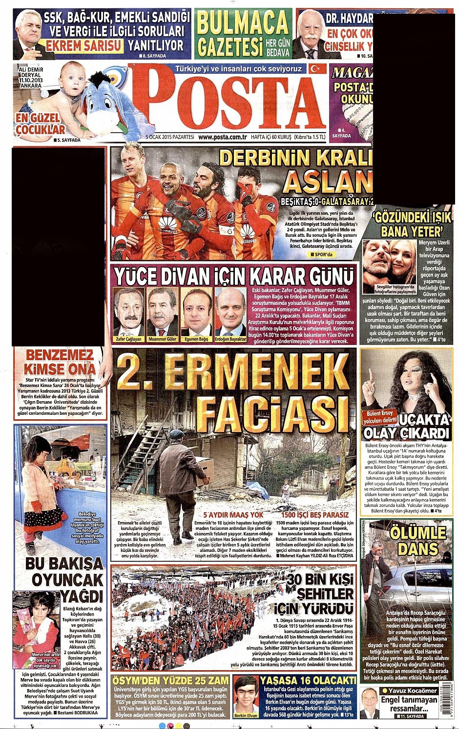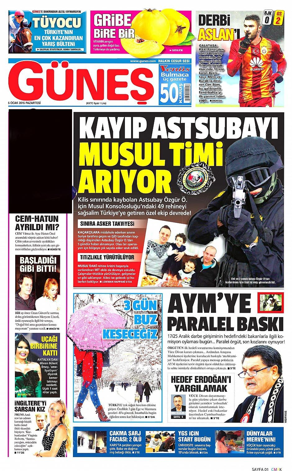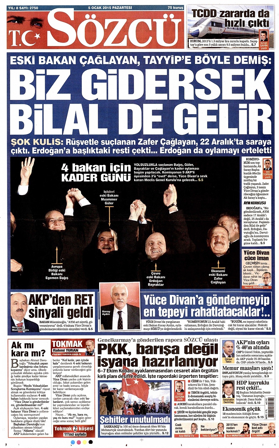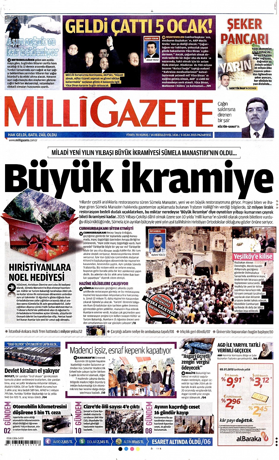 5 Ocak 2015 gazete manşetleri