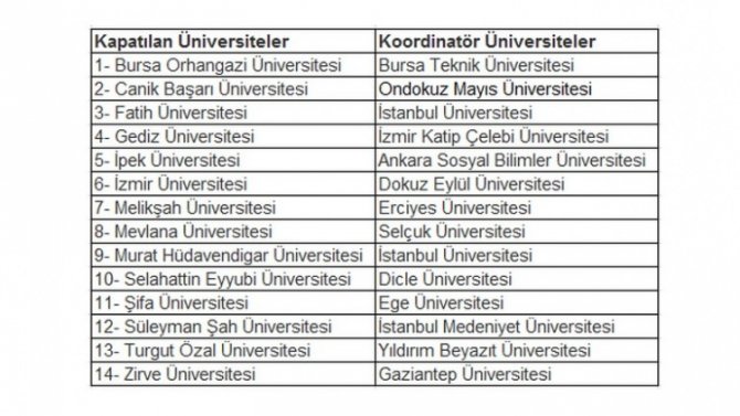 Mezuniyeti hak etmiş olduğu halde üniversitelerinin kapanmasından dolayı diplomaalamayan öğrencilerin diplomaları koordinatör üniversiteler, öğrenim görmekte olan öğrencilerin diplomaları yerleştirilecekleri üniversiteler tarafından düzenlenecek.”