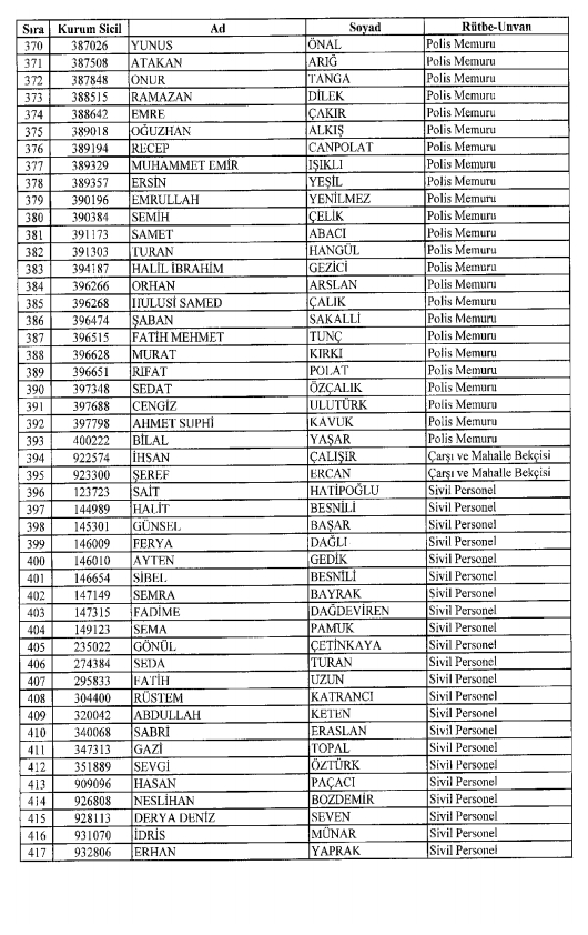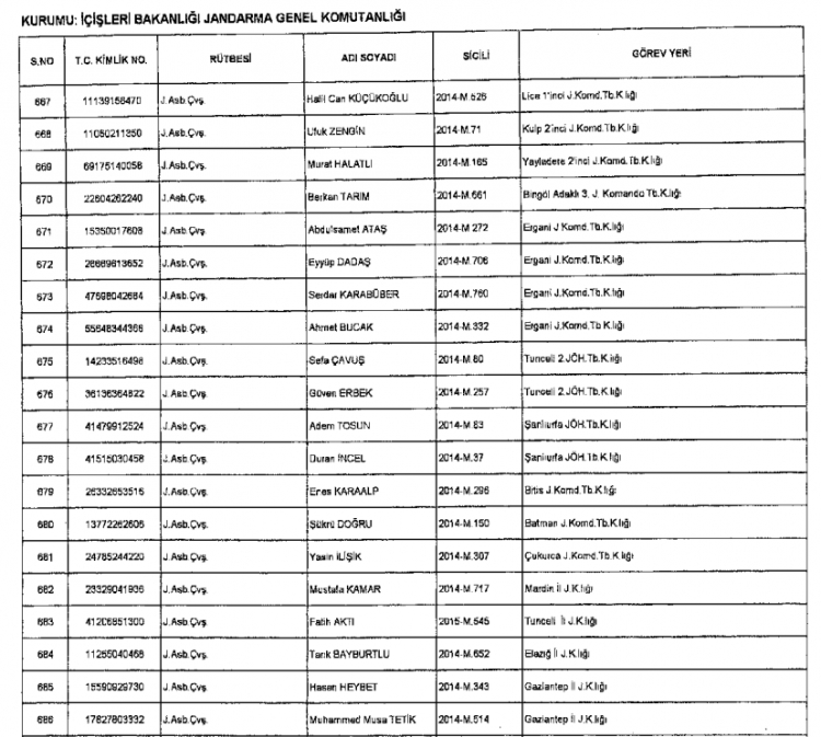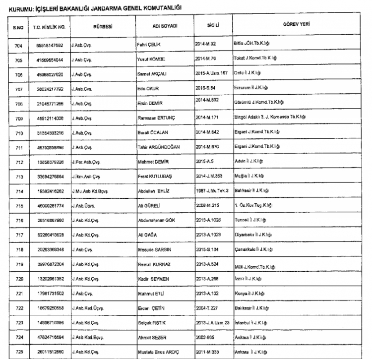 686 sayılı KHK ile Kamudan ihraç ve iade edilenlerin tam listesi