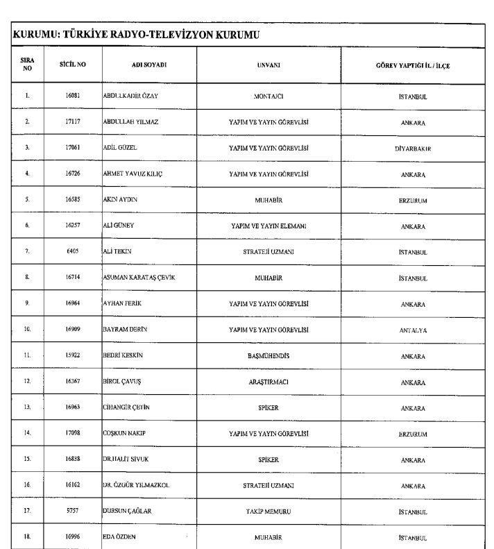 Yeni KHK kapsamında çok sayıda personel kamudan ihraç edildi. İşte kamudan ihraç ve edilenlerin tam listesi...