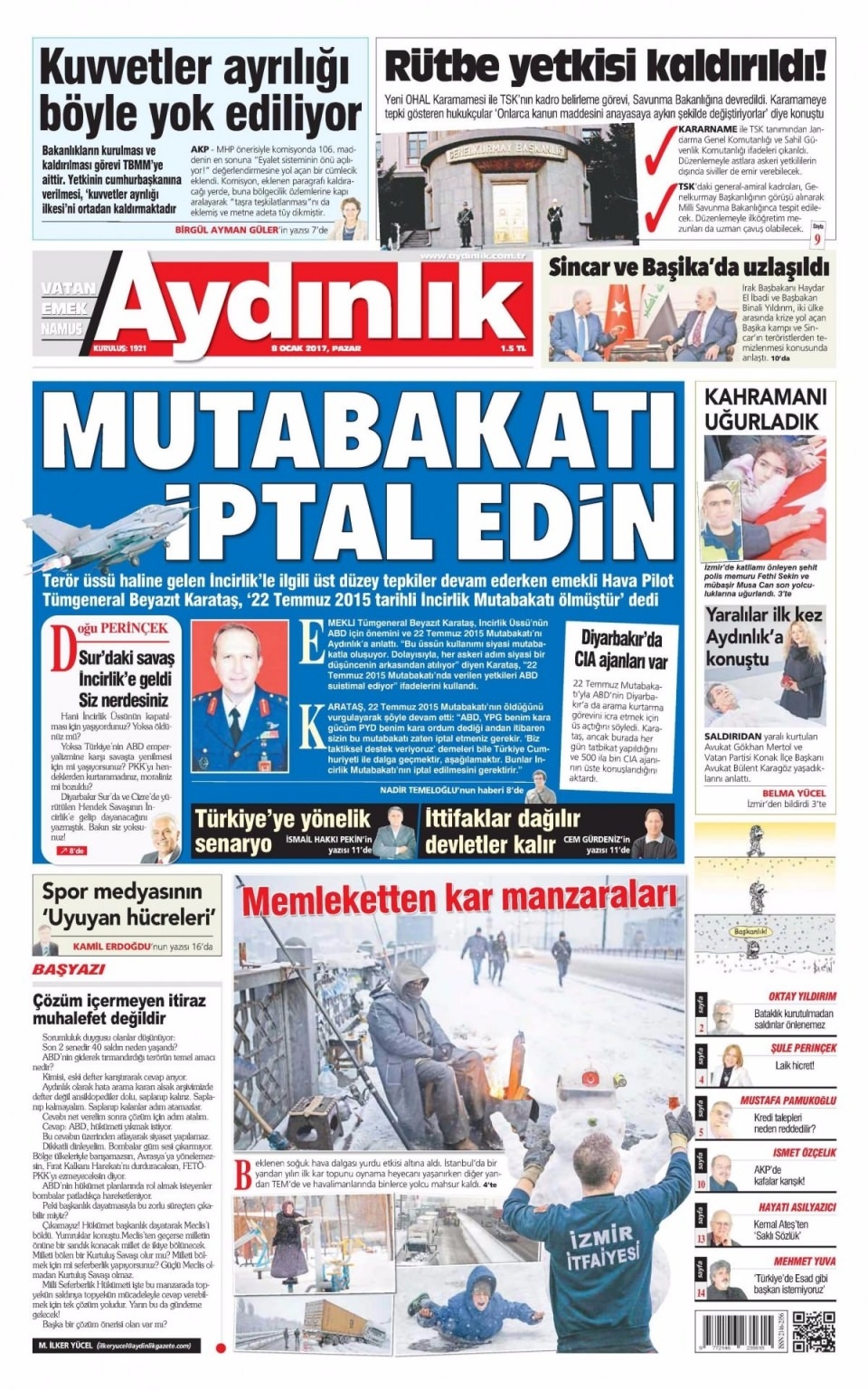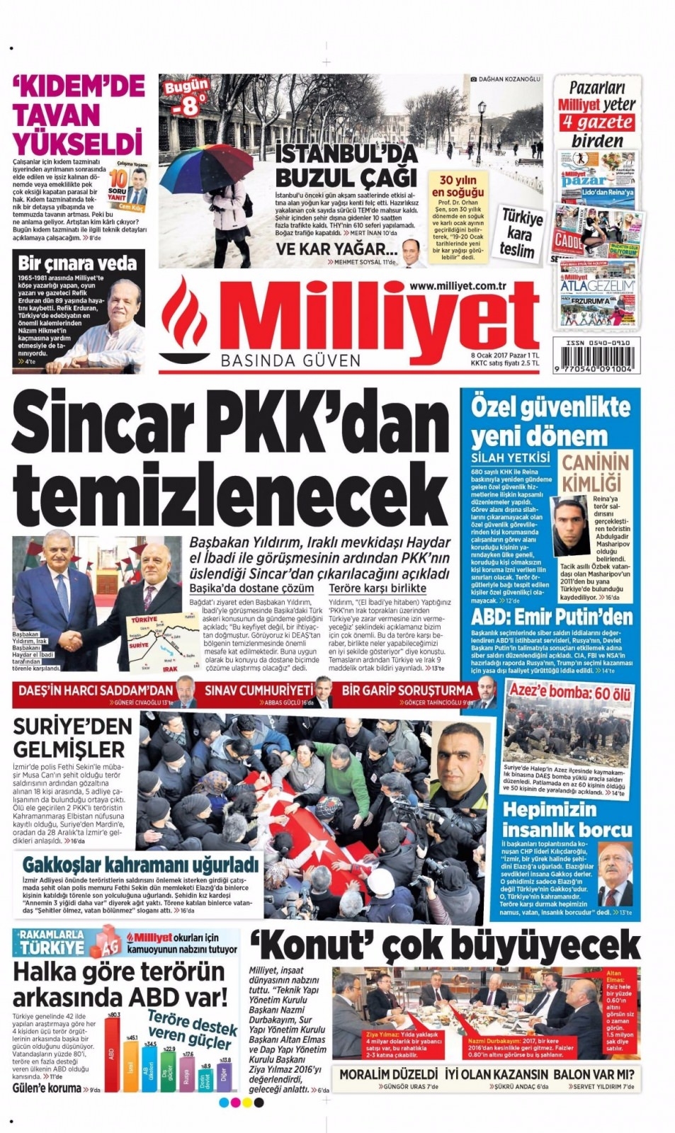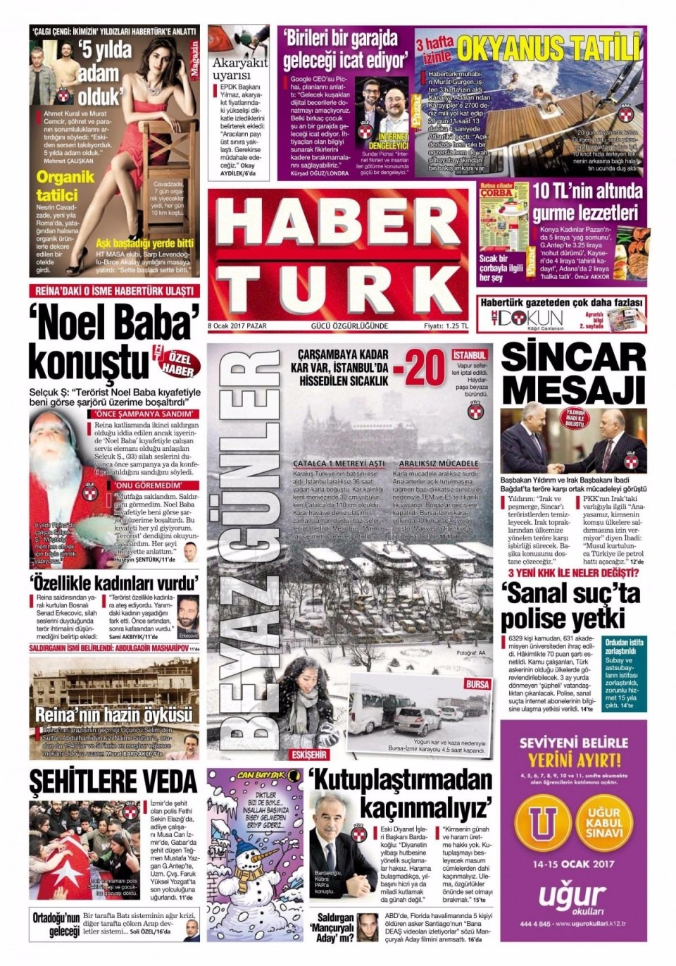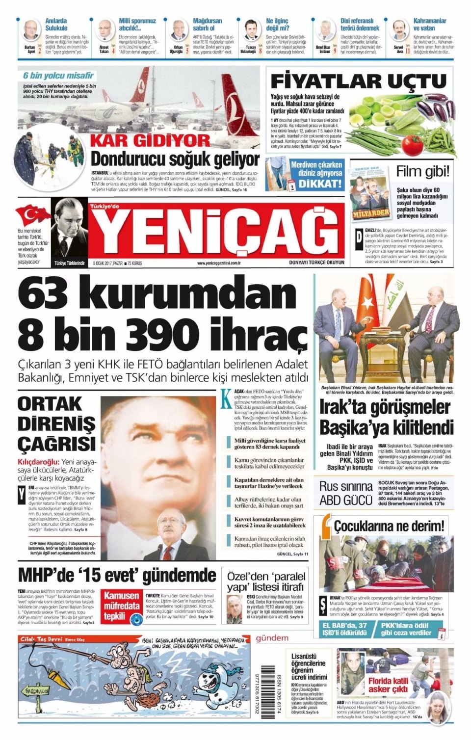 8 Ocak Pazar Gazete Manşetleri