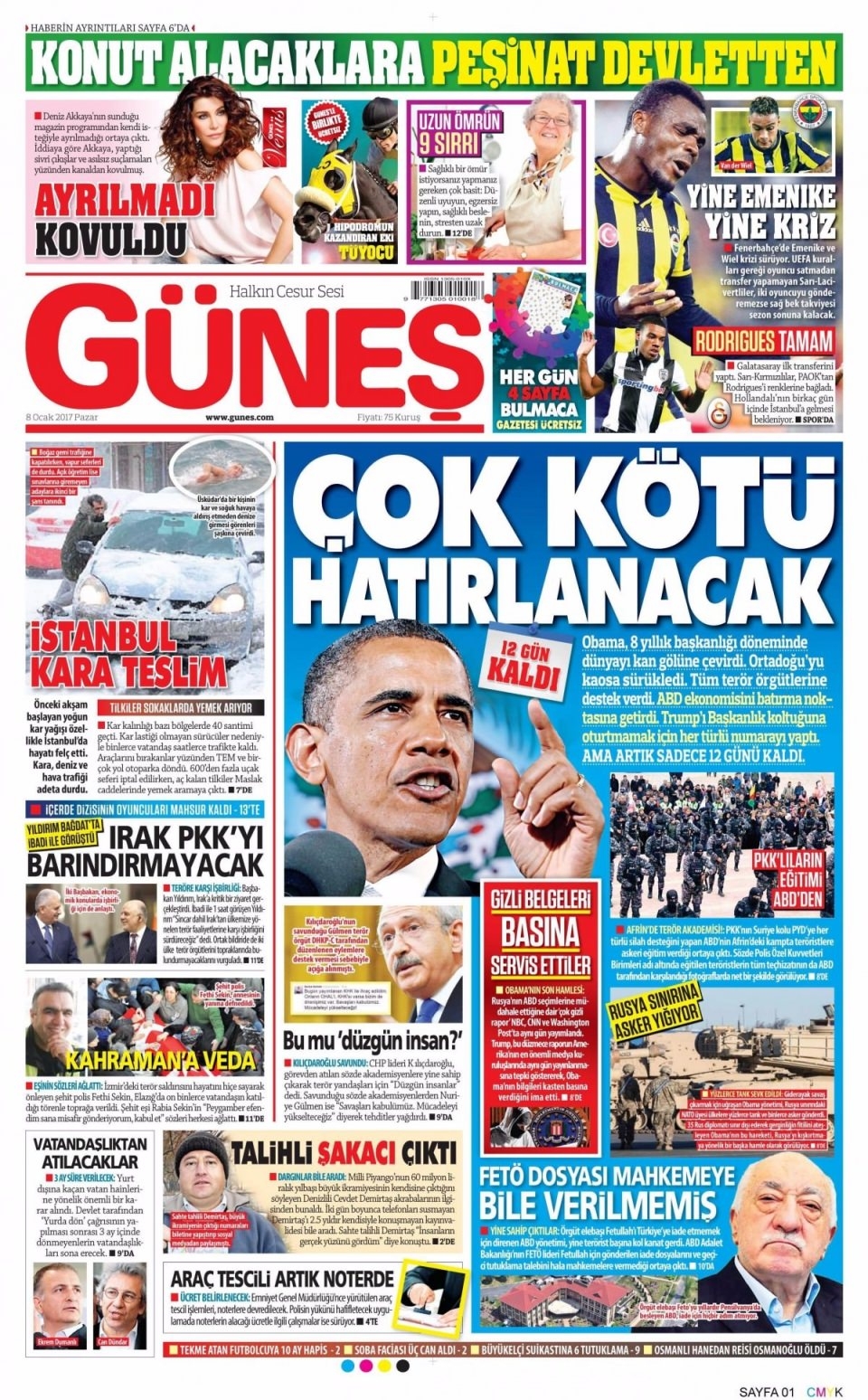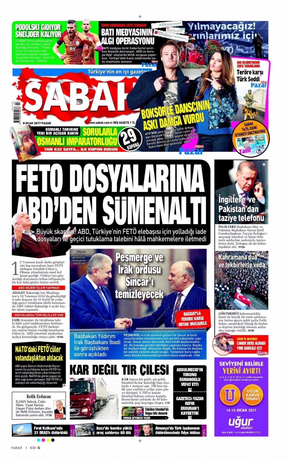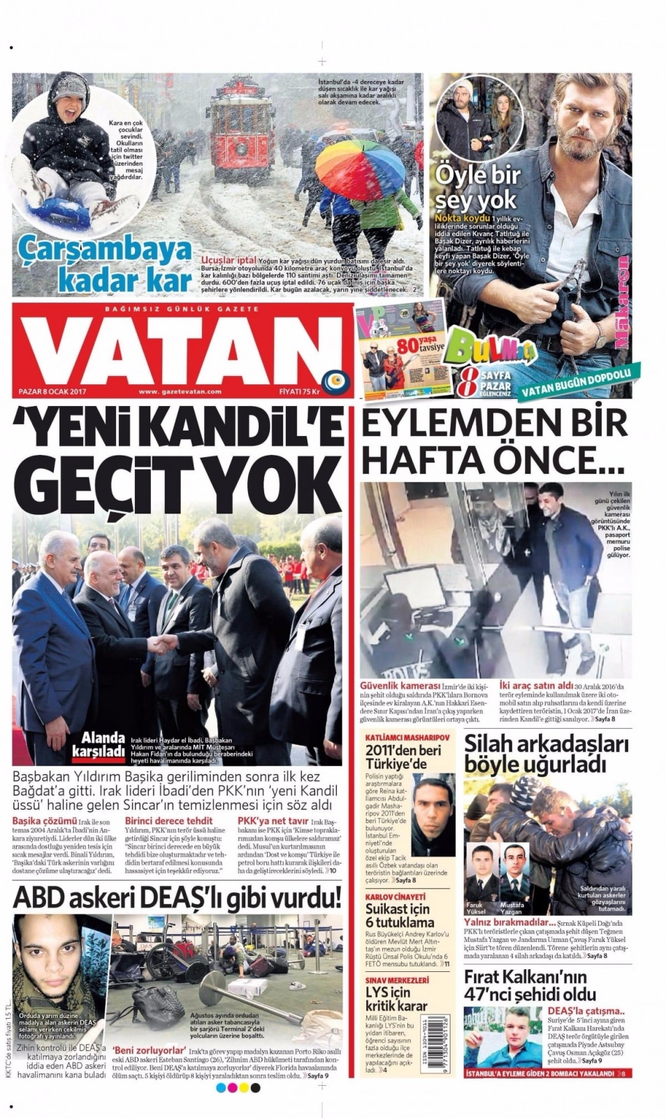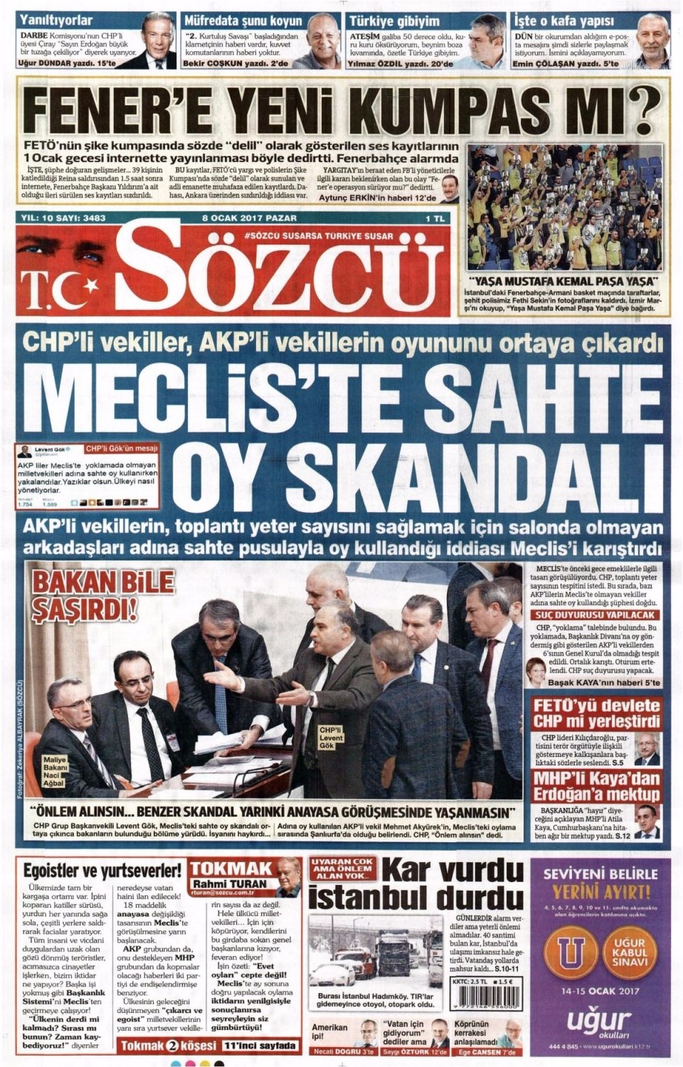 8 Ocak Pazar Gazete Manşetleri