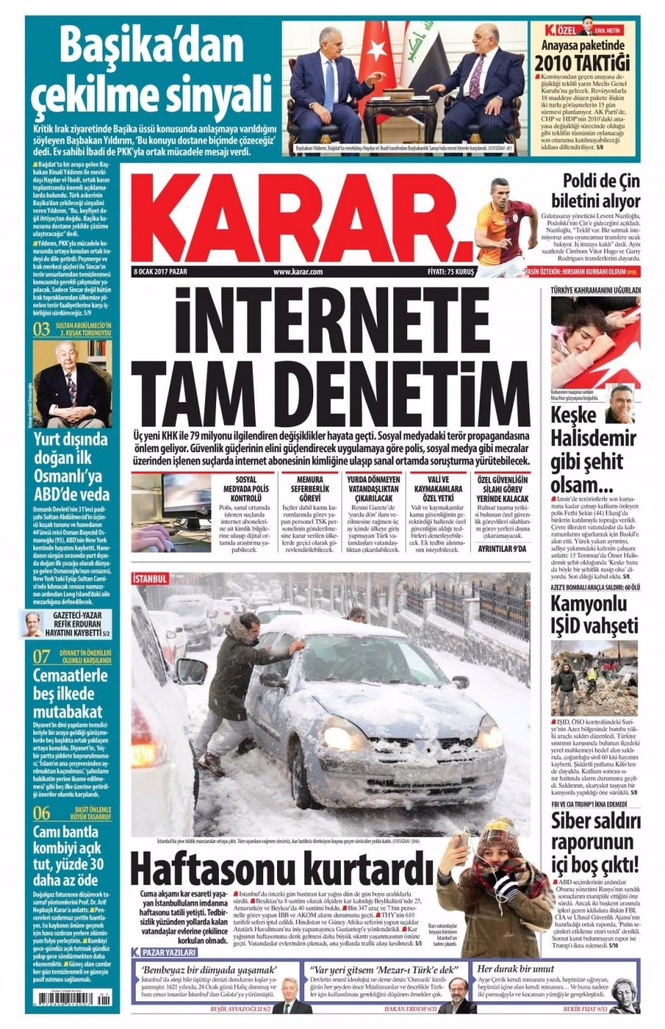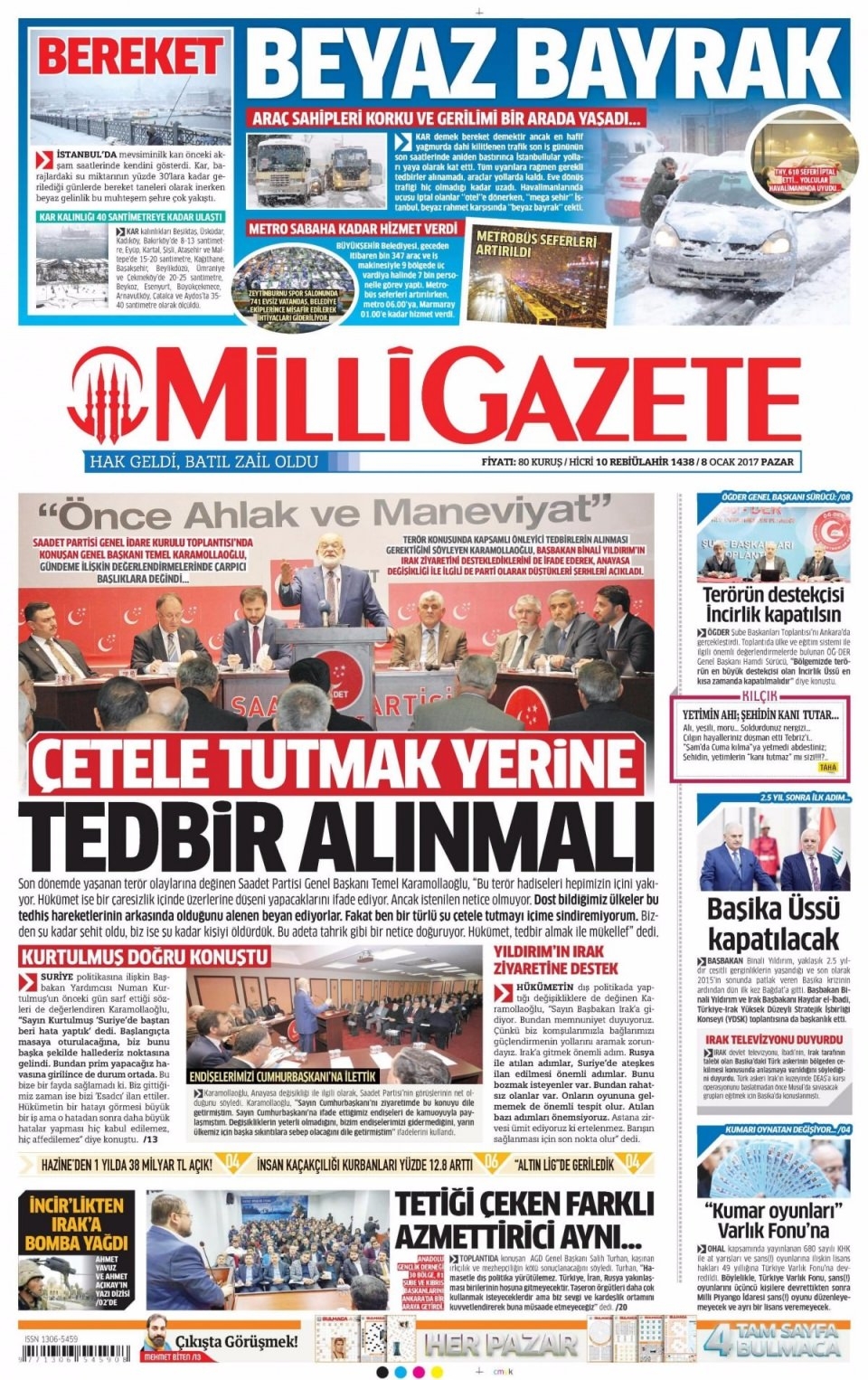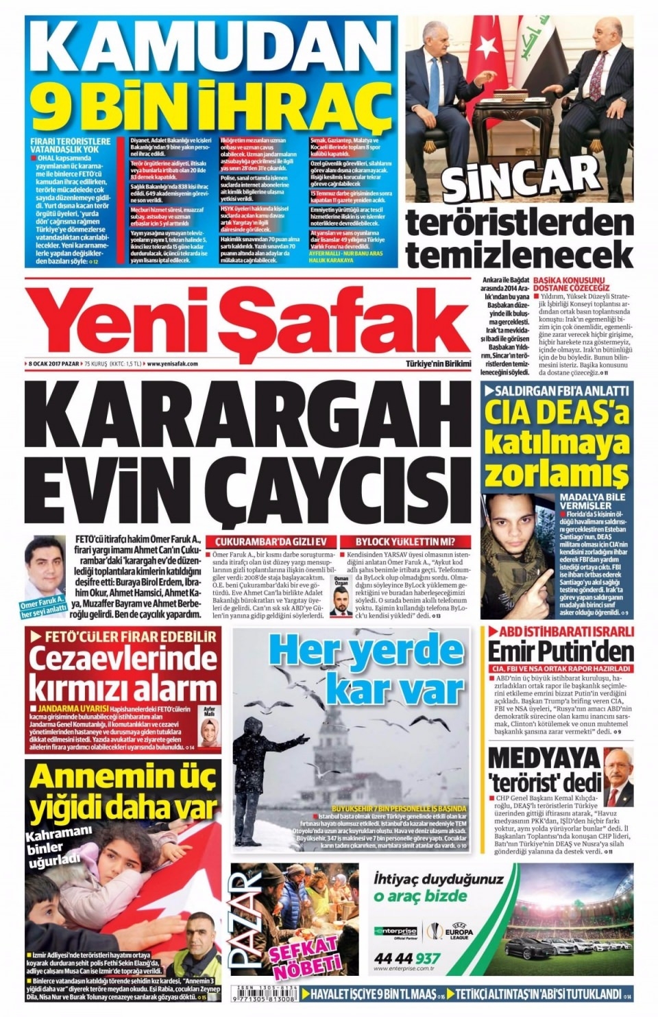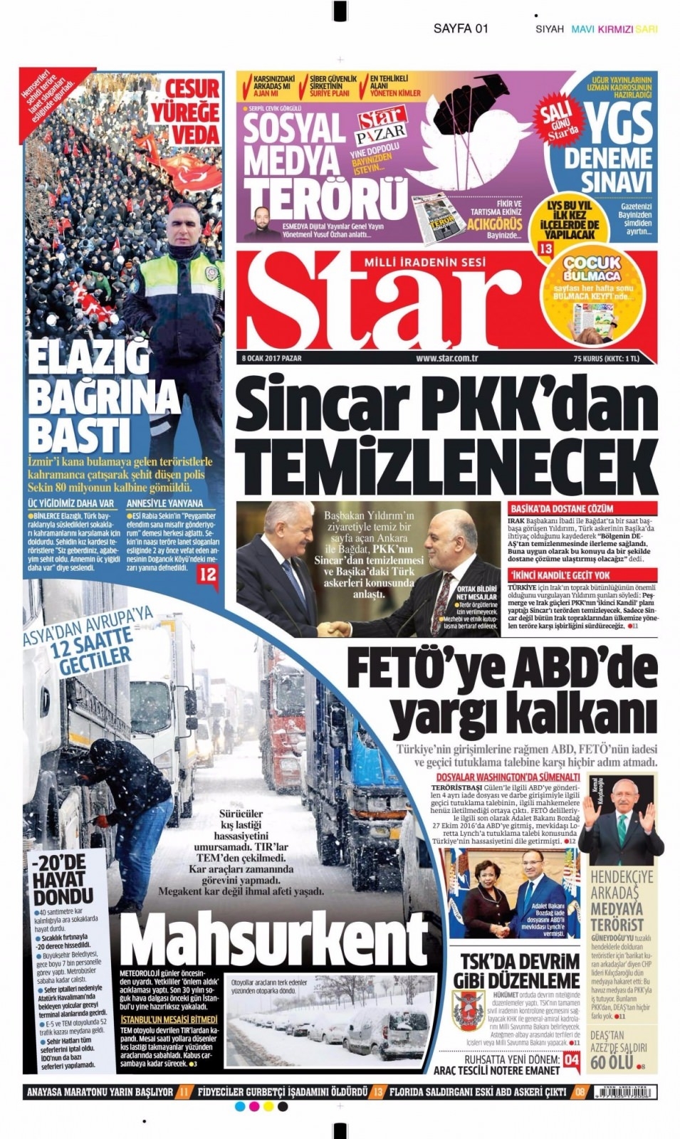 8 Ocak Pazar Gazete Manşetleri