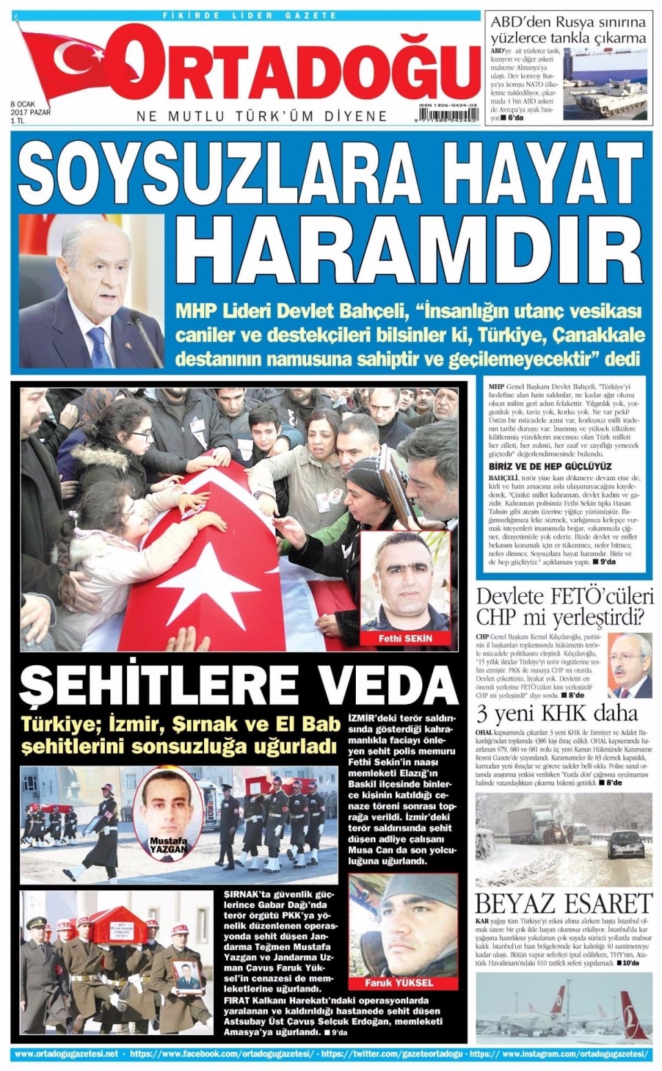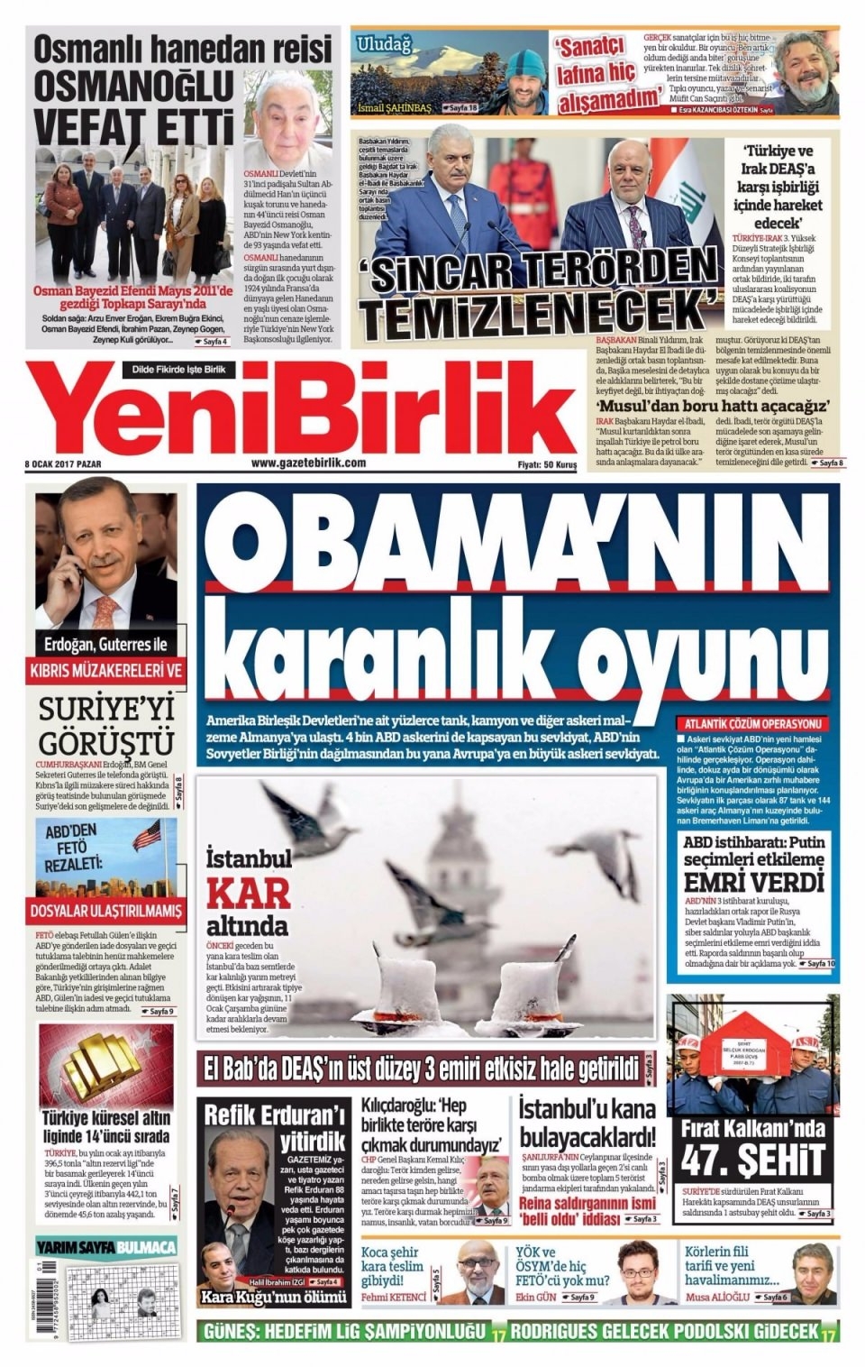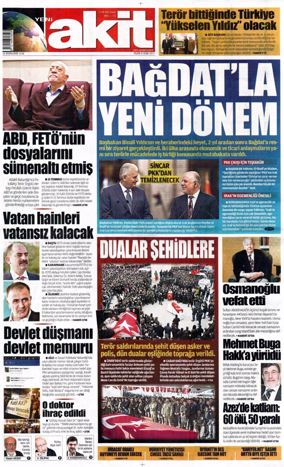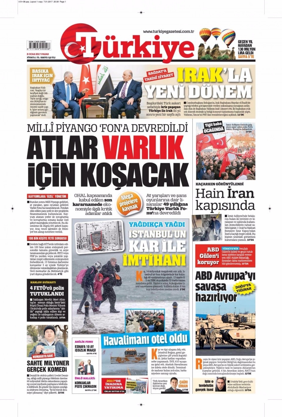 8 Ocak Pazar Gazete Manşetleri