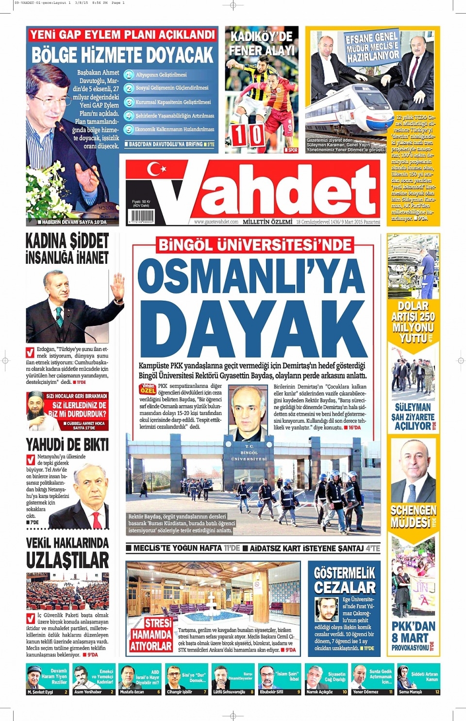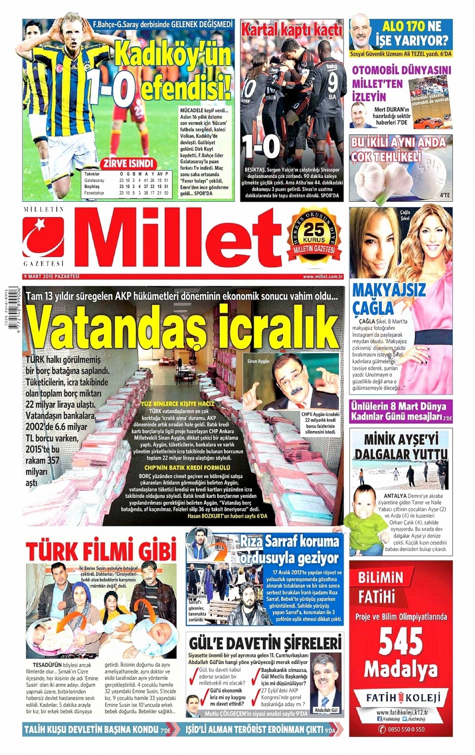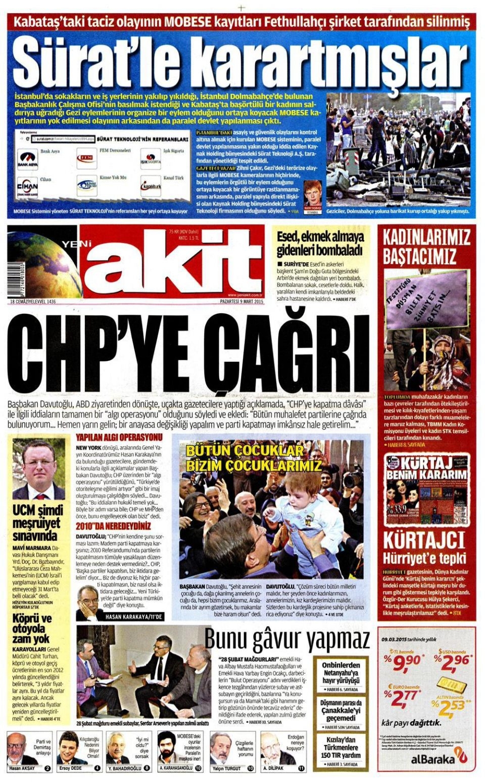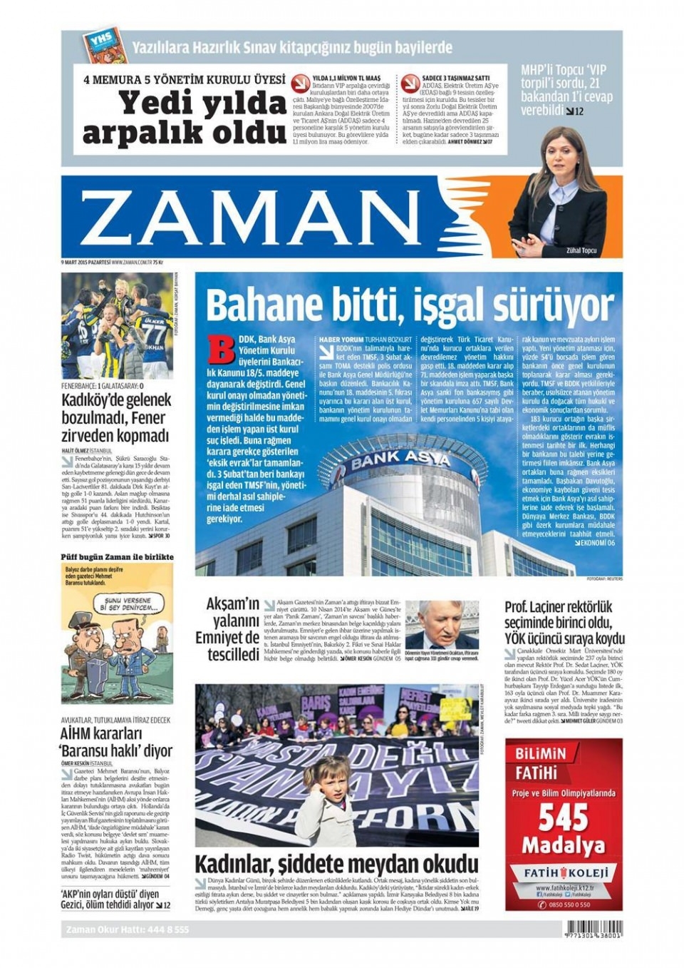 9 Mart 2015 gazete manşetleri