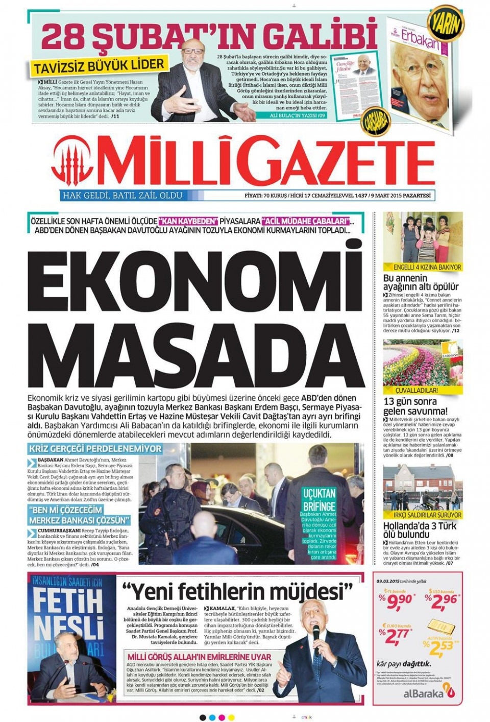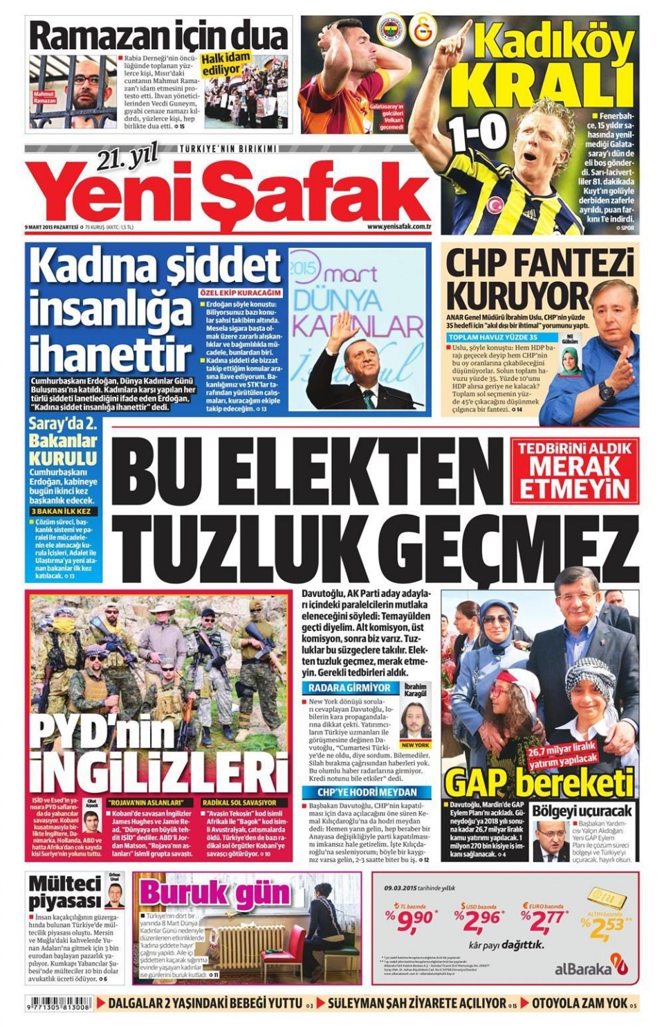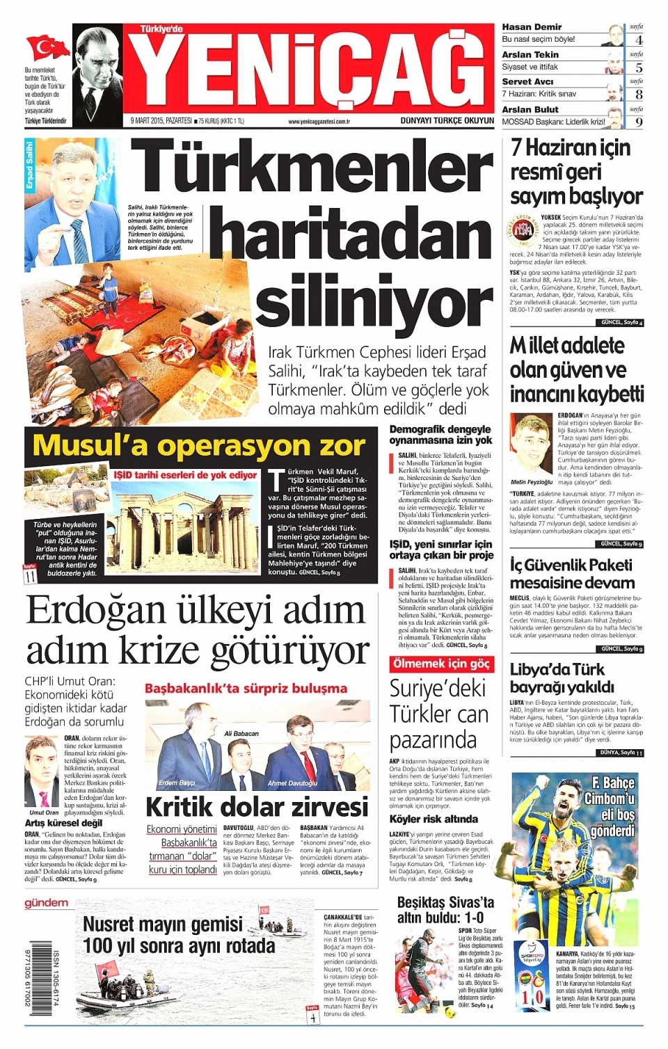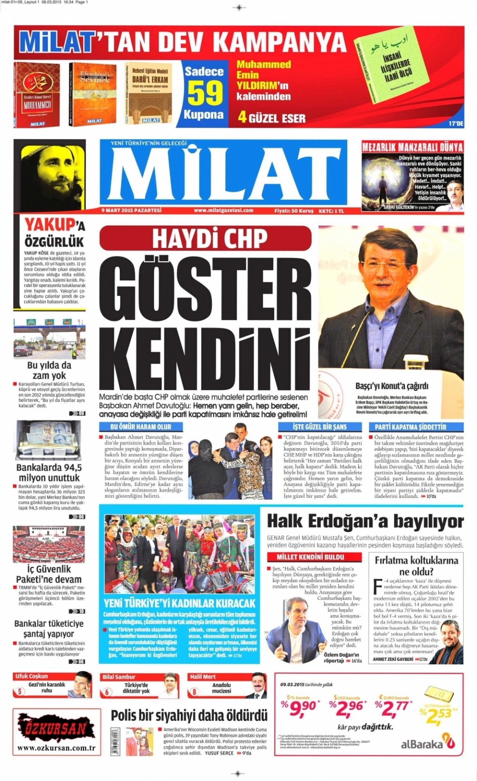 9 Mart 2015 gazete manşetleri