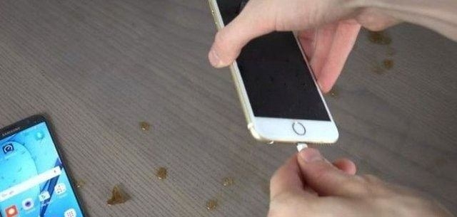 Bu da yetmiyor buzu eritebilmek için sıcak su her iki telefona da dökülüyor.