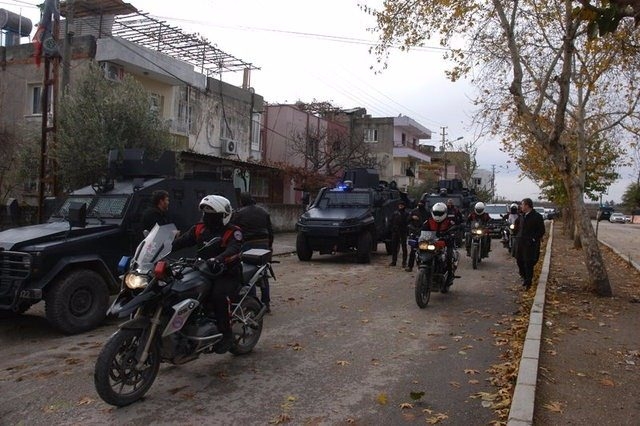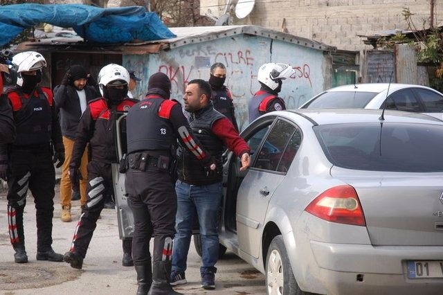 Adana'nın Ceyhan ilçesinde yasa dışı gösterilerin düzenlendiği mahallelerde bin polisin katılımıyla "huzur" uygulaması yapıldı.