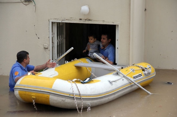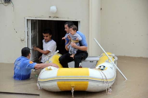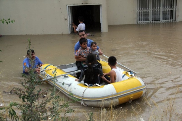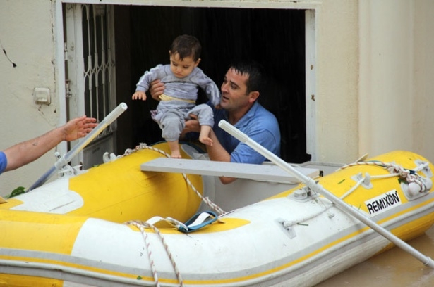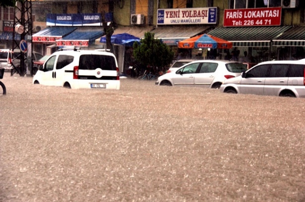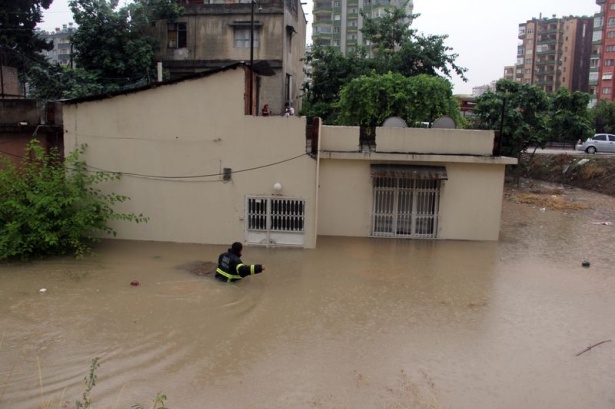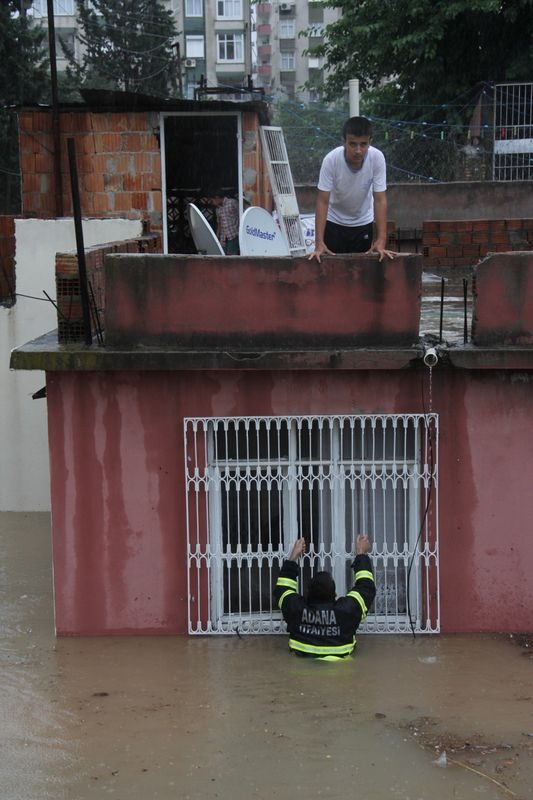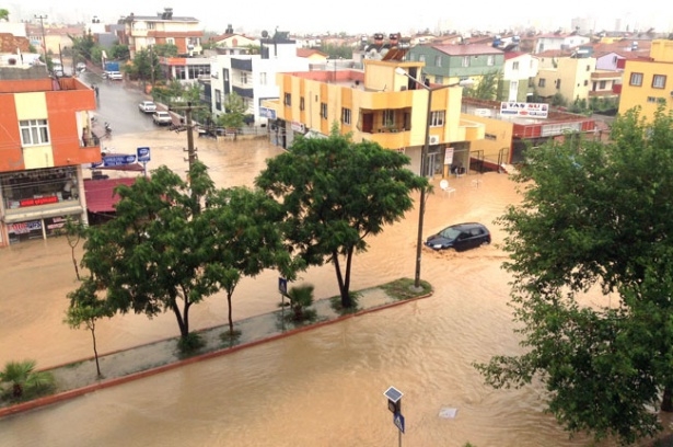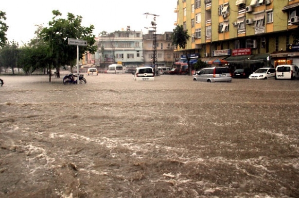 Adana'da şiddetli yağış nedeniyle çok sayıda ev ve iş yerini su bastı, araçlar mahsur kaldı, su altında kalan caddeler adeta nehire dönüştü.