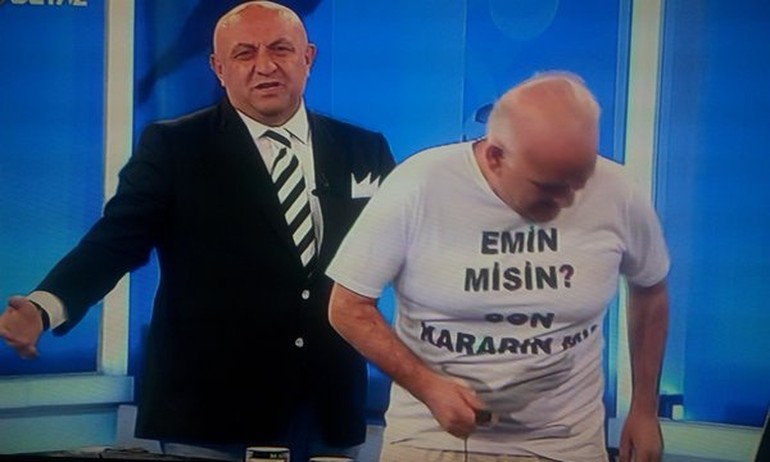 Önünde Emin misin? Son kararın mı? yazan, sırt kısmında ise kazık figürü bulanan tşörtle programa çıkan Çakar Beşiktaşlılara olan sözünü bu şekilde tuttu.