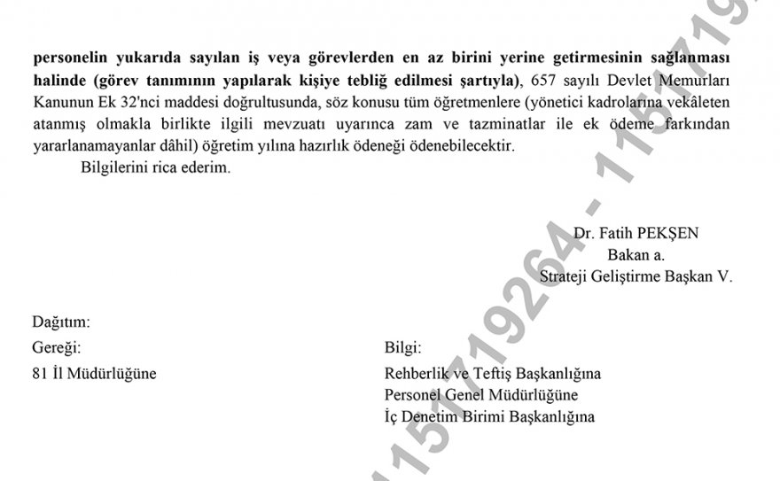 Aile ve Sosyal Hizmetler Bakanlığından 23 Ocak 2023 tarihinde tüm taşra birimlerine yazılan yazıda, bakanlık taşra teşkilatında çalışan öğretmenlerden aşağıda sayılan görevleri yerine getirenlere öğretim yılına hazırlık ödeneği verilmesi uygun görülmüştür: