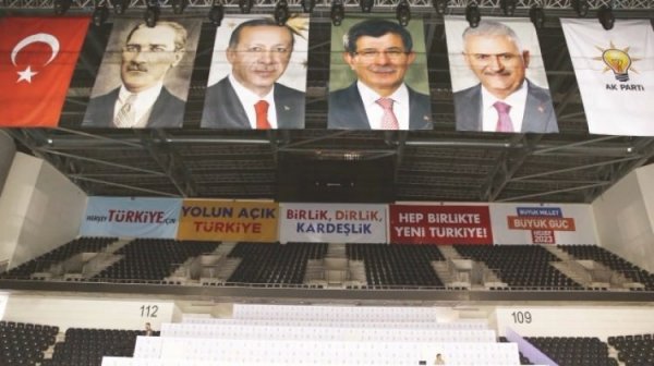 AK Parti kongresinin yapılacağı salon doldu. Kongrenin sloganı 'Kutlu Yürüyüşe Devam' olarak açıklandı.