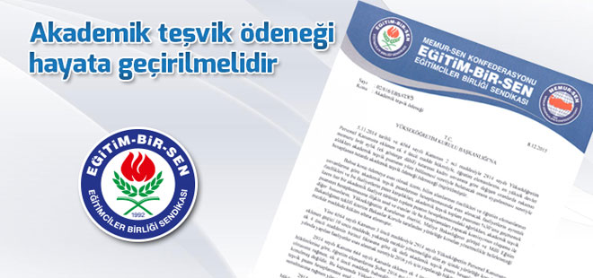 Eğitim-Bir-Sen olarak, 2016 Şubat ayında ödenmeye başlanması gereken akademik teşvik ödeneğinin ödenebilmesi için gerekli olan yönetmeliğin bir an evvel çıkarılması için Başbakanlık, YÖK Başkanlığı, Maliye ve Milli Eğitim bakanlıklarına başvuruda bulunduk.