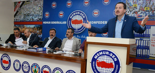 3. Dönem Toplu Sözleşmeyi tarihi olarak nitelendiren Yalçın, son 12 yılın en iyi Toplu Sözleşmesine imza attıklarını vurgulayarak, “Bugüne kadar katsayı sorununu çözme, kılık kıyafet özgürlüğünü sağlama, kamusal alan yalanına son verme, 28 Şubat mağduriyetlerini ortan kaldırma, Cuma namazına mesai engelini ortadan kaldırma ve ülkenin normalleşmesinde öncü rol üstlendik. Bugüne kadar elde ettiğimiz hem cüzdana hem de vicdana yönelik kazanımlarımıza bu Toplu Sözleşme’de yenilerini ekledik. Toplu Sözleşme sürecine giderken çalışanların ve kamu görevlilerinin başını yere eğdirecek hiçbir maddeye imza atmayız dedik ve sözümüzde durduk. 9 yıl masaya oturup, kamu görevlilerine hiçbir kazanım elde edemeyenlerin bütün provokasyonlarına rağmen toplamda 213 kazanımla masadan kalktık. Onlar masaya yapışıp kalırken, biz 20 milyonun mutluluk vesilesi olduk” şeklinde konuştu.
