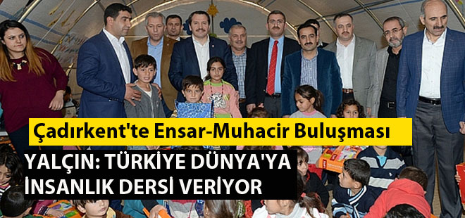 Çadırkent’te Suriye ve Iraklı misafirlerin sorunlarını dinleyen, acılarını paylaşan Ali Yalçın, bir süre gençlerle sohbet etti, masa tenisi ve satranç oynadı, çocuklara hediyeler dağıttı.