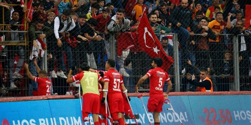 Karşılaşmayı yaklaşık 15 bin futbolsever, ellerinde Türk bayraklarıyla Ampute Milli Takımı'na destek verdiler.