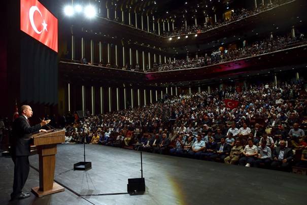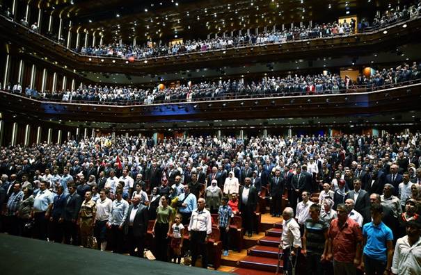 Türkiye Büyük Millet Meclisi Başkanı İsmail Kahraman, Başbakan Binali Yıldırım, Bakanlar, milletvekilleri, Genelkurmay Başkanı Orgeneral Hulusi Akar ve Diyanet İşleri Başkanı Mehmet Görmez’in hazır bulunduğu program, Fethullahçı Terör Örgütü’nün (FETÖ) 15 Temmuz’daki darbe girişimine direnerek şehit olanların yakınları ile bu direnişte yaralanan gazilerin ve çok sayıda misafirin katılımıyla gerçekleşti. Darbe girişimini protesto etmek amacıyla Cumhurbaşkanlığı Külliyesi etrafında ‘demokrasi nöbeti’ tutan çok sayıda vatandaş da programı dışarıda kurulan dev ekrandan izledi.