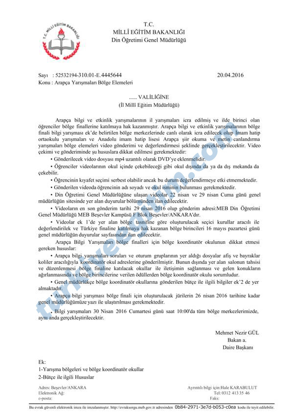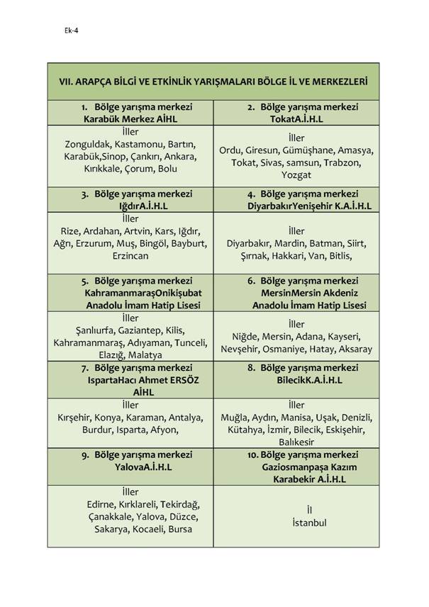 Din Öğretimi Genel Müdürlüğünden Arapça Yarışmaları Bölge Elemeleri konulu yazılı
