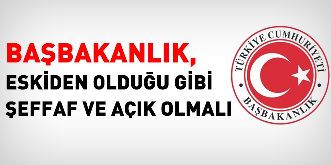 Başbakanlık ve Bakanlar Kurulu şeffaf olmalı