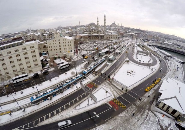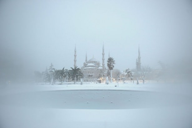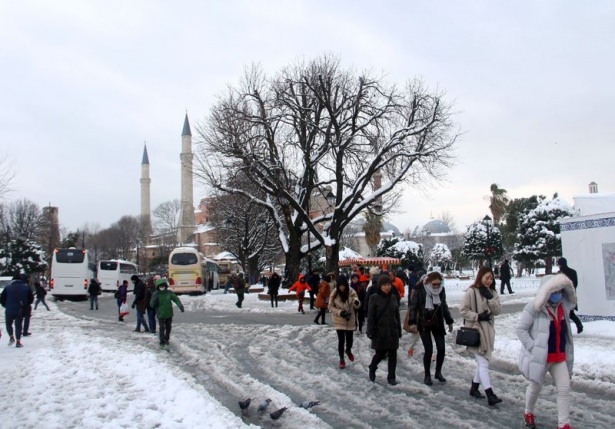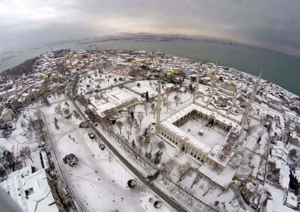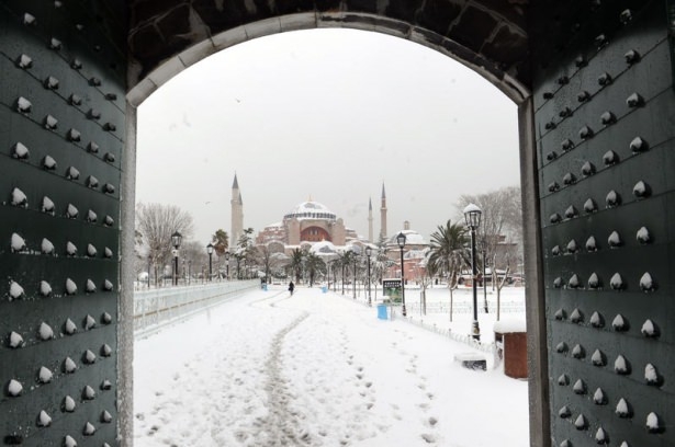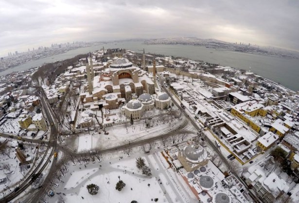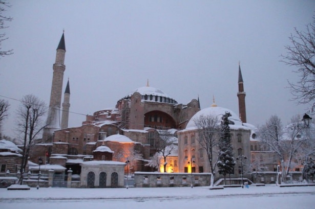 İstanbul'da etkili olan kar yağışının ardından güzel görüntüler de oluştu. Fotoğrafta Sultanahmet Meydanı ve Ayasoyfa Müzesi görülüyor