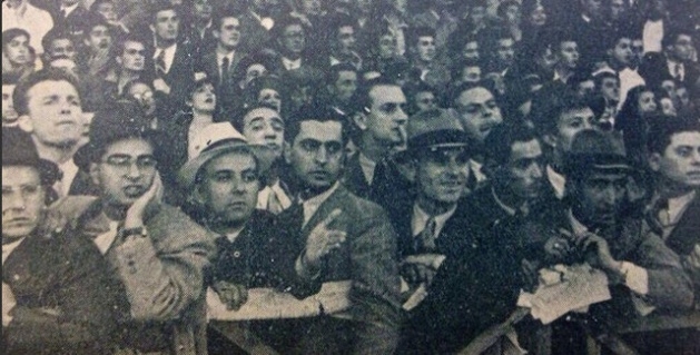 Kadıköy'de Fenerbahçe - Galatasaray maçı ve tribünde taraftarlar. (1939)