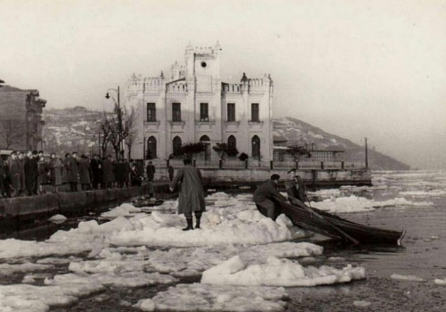 Sarıyer (Ocak 1954)Tuna Nehri'nden kopan buz parçaları istanbul Boğazı'nda...