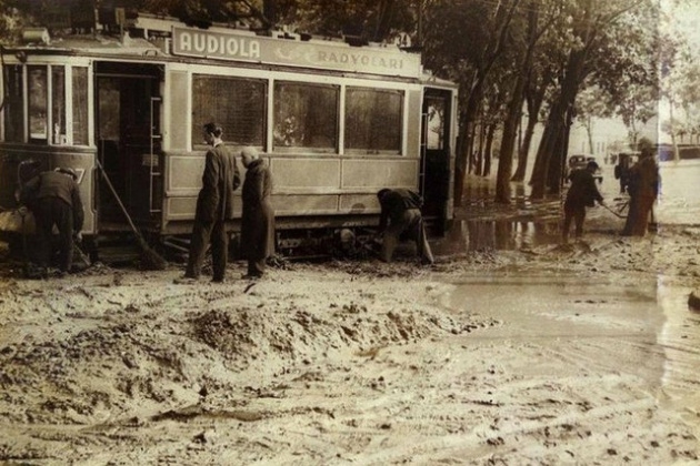 Dolmabahçe'de çamura saplanan tramvay (1961 öncesi)
