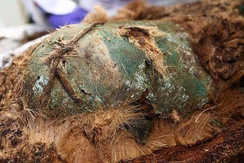 Vücudu bakırla kaplı olan 'kızıl saçlı adam'ın yanında bir takım başka defin cisimleri de bulundu.