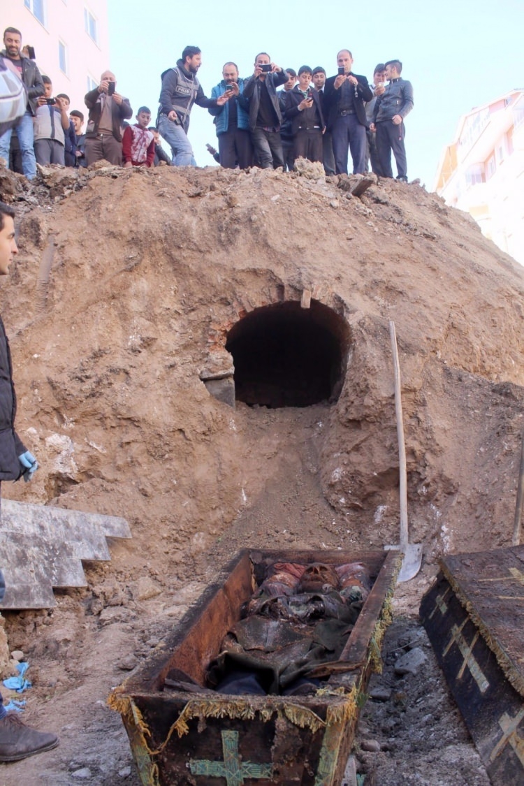 Kentin Karagöl Mahallesi'nde iş makinasıyla temel kazısı yapılırken, üzerinde hac işareti olan bir tabut ortaya çıktı.