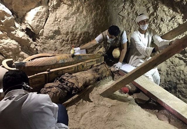 Mısır'da firavunların mezarlarının bulunduğu meşhur Krallar Vadisi yakınlarındaki arkeolojik çalışma yürüten Mustafa El Veziri, ölüler kentinde onlarca tarihi eserin yanı sıra, firavunlara ait 6 mumya, tabut ve heykeller bulunduğunu açıkladı.