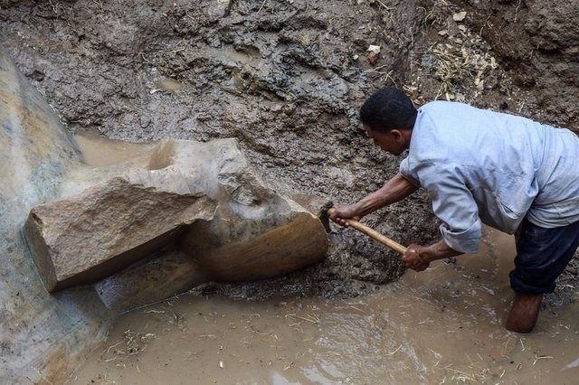 KAHİRE'NİN DOĞUSUNDA BULUNAN HEYKELİN 2'İNCİ RAMSES'E AİT OLDUĞU TAHMİN EDİLİYOR