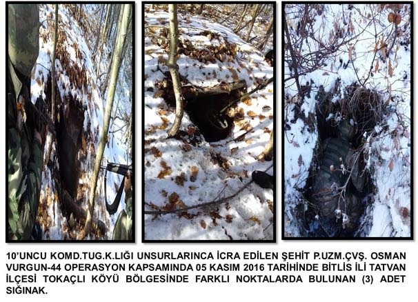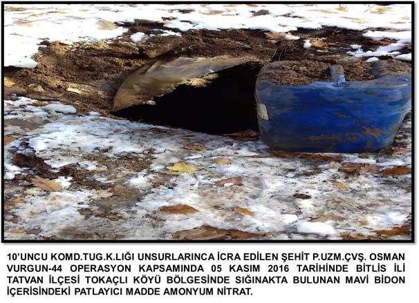Bitlis’in Tatvan İlçesi Tokaçlı Köyü kırsal kesimde yürütülen operasyonlarda terör örgütü PKK’ya ait 3 ayrı sığınakta patlayıcı yapımında kullanılan