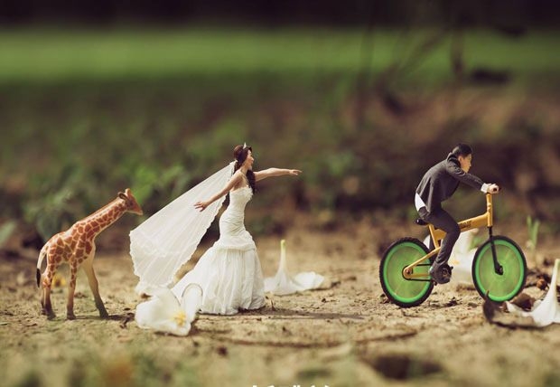 Düğün fotoğrafçılığına yeni bir soluk getiren Saelow, evli çiftleri minyatür karakterlere çevirerek çiftlerin oldukça orijinal hatıralar biriktirmelerine olanak sağlıyor.