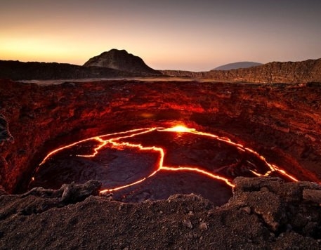 Aktif bir yanardağ olan Erta Ale'nin üzerinde bulunan bir lav gölü. (Etiyopya)