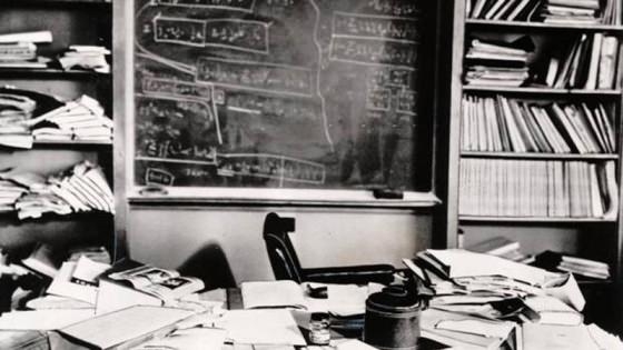 Einstein'ın çalışma masasının ölümünden saatler sonraki görüntüsü.