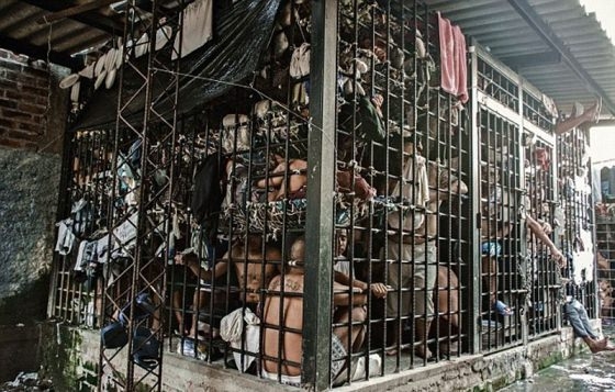 El Salvador'da aşırı bir kalabalık bir hapishane.