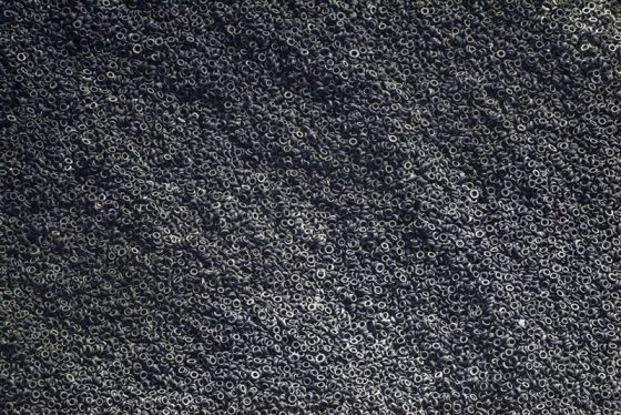 Bir araba lastiği çöplüğünün havadan görüntüsü.