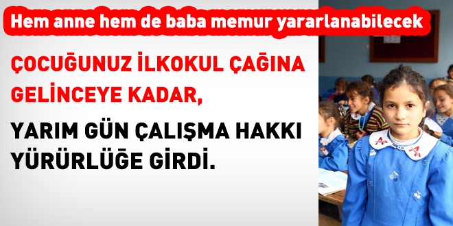 Çocuk ilkokul çağına gelene kadar yarım gün çalışma hakkı