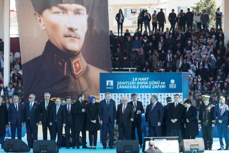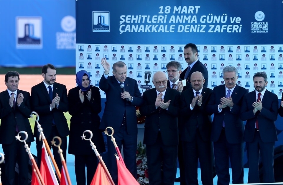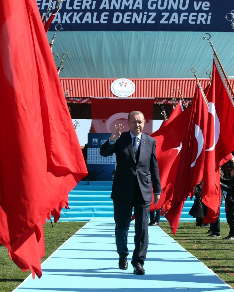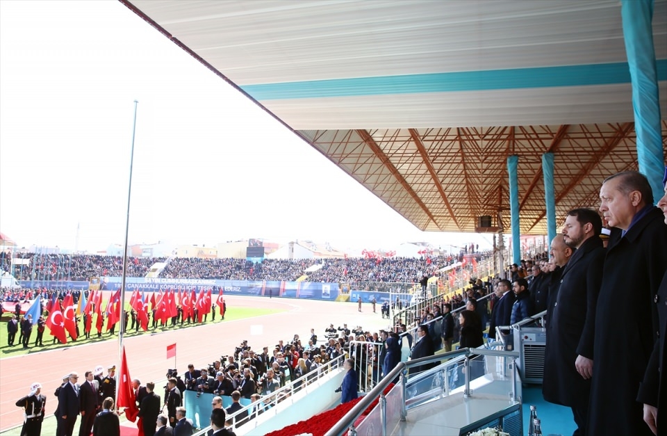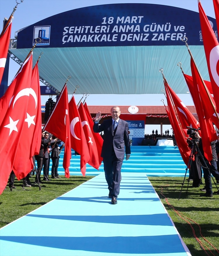 Cumhurbaşkanı Recep Tayyip Erdoğan, 18 Mart Şehitleri Anma Günü ve Çanakkale Deniz Zaferi'nin 102. yılı dolayısıyla 18 Mart Stadyumu'nda düzenlenen