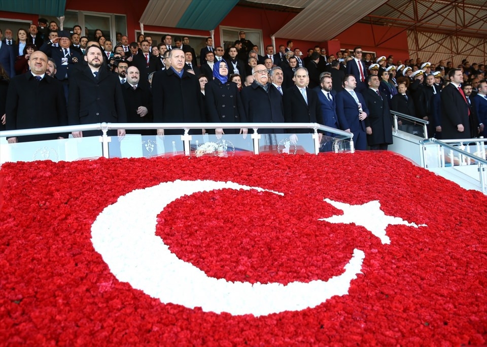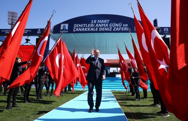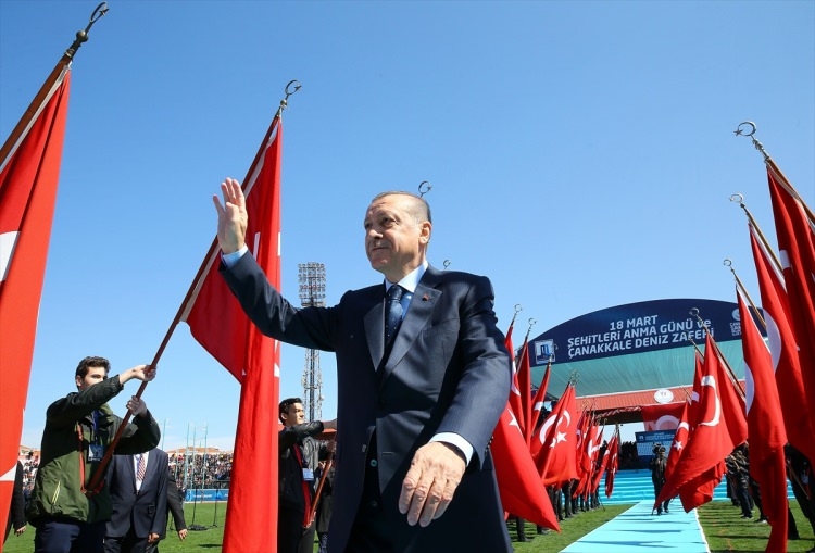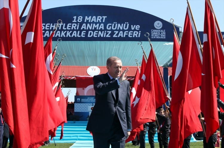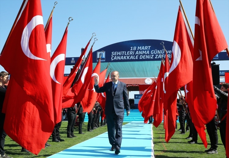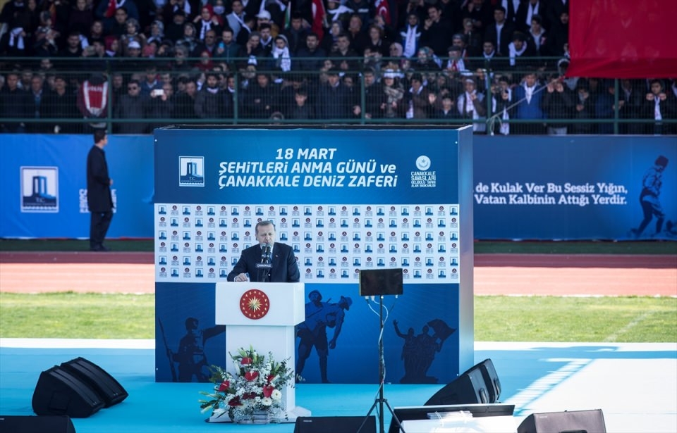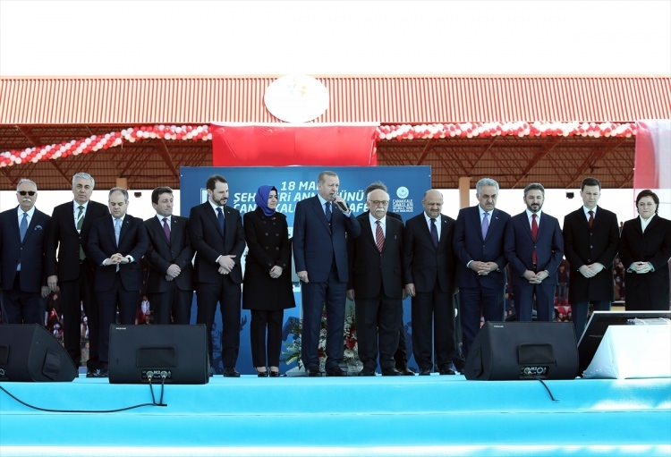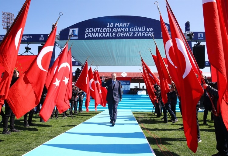 Cumhurbaşkanı Recep Tayyip Erdoğan, 18 Mart Şehitleri Anma Günü ve Çanakkale Deniz Zaferi'nin 102. yılı dolayısıyla 18 Mart Stadyumu'nda düzenlenen