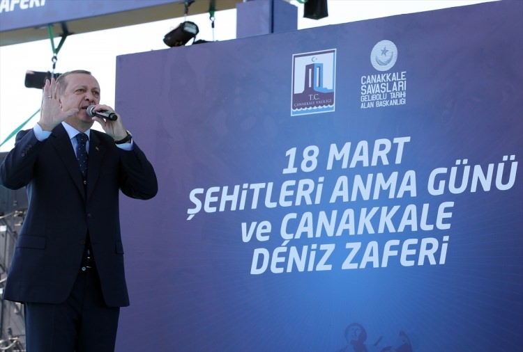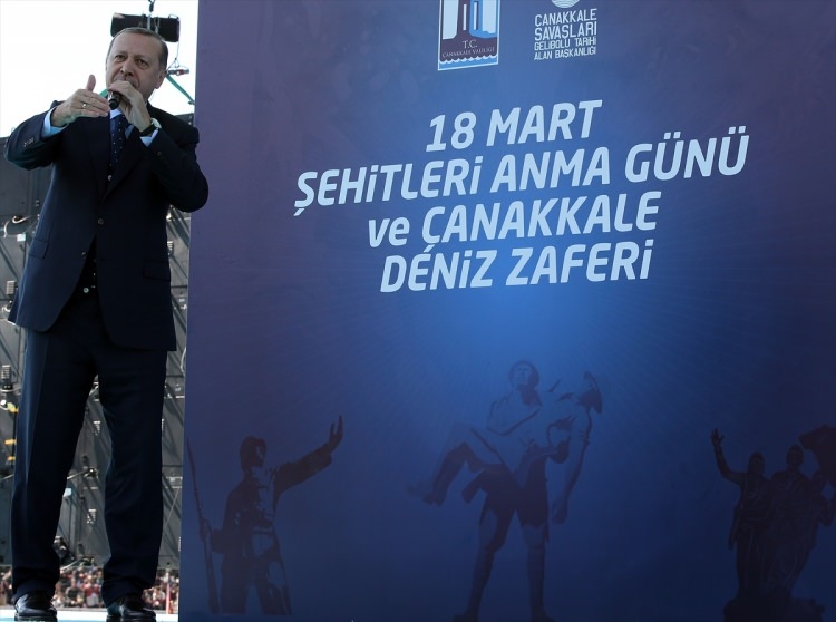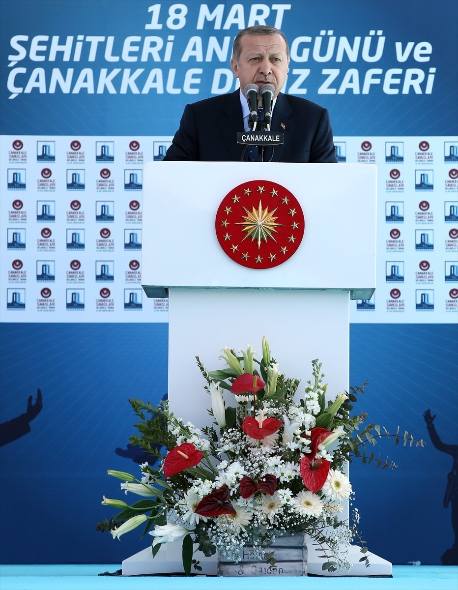 Cumhurbaşkanı Recep Tayyip Erdoğan, 18 Mart Şehitleri Anma Günü ve Çanakkale Deniz Zaferi'nin 102. yılı dolayısıyla 18 Mart Stadyumu'nda düzenlenen törenlere katıldı. Erdoğan, burada konuşma yaptı.