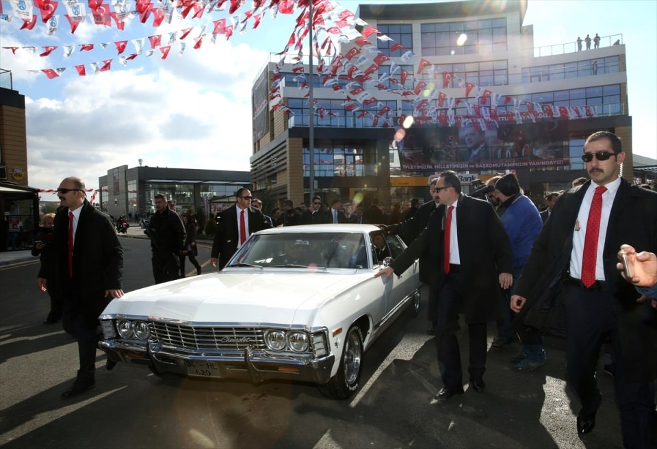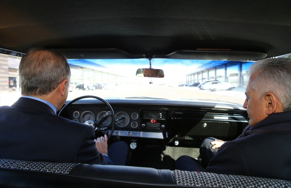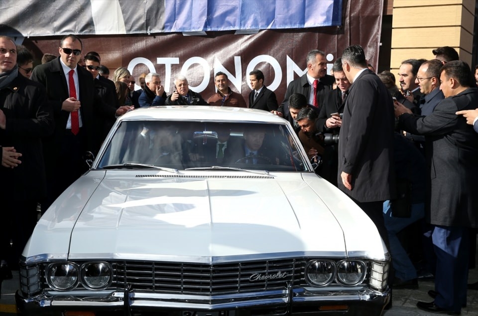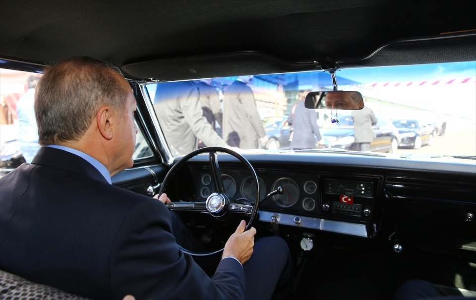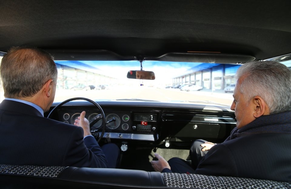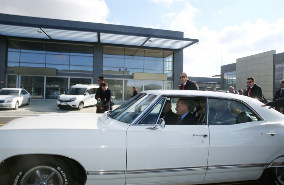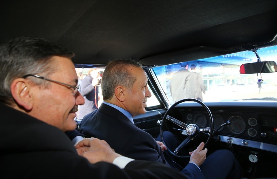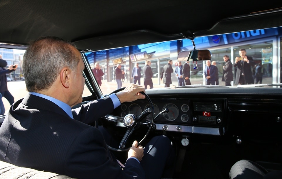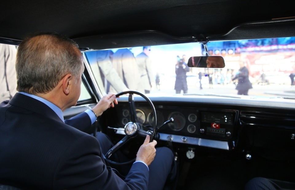 Açılış töreninde Erdoğan, klasik bir otomobilin direksiyonuna geçerek bir süre kullandı.