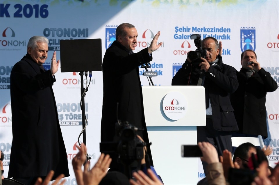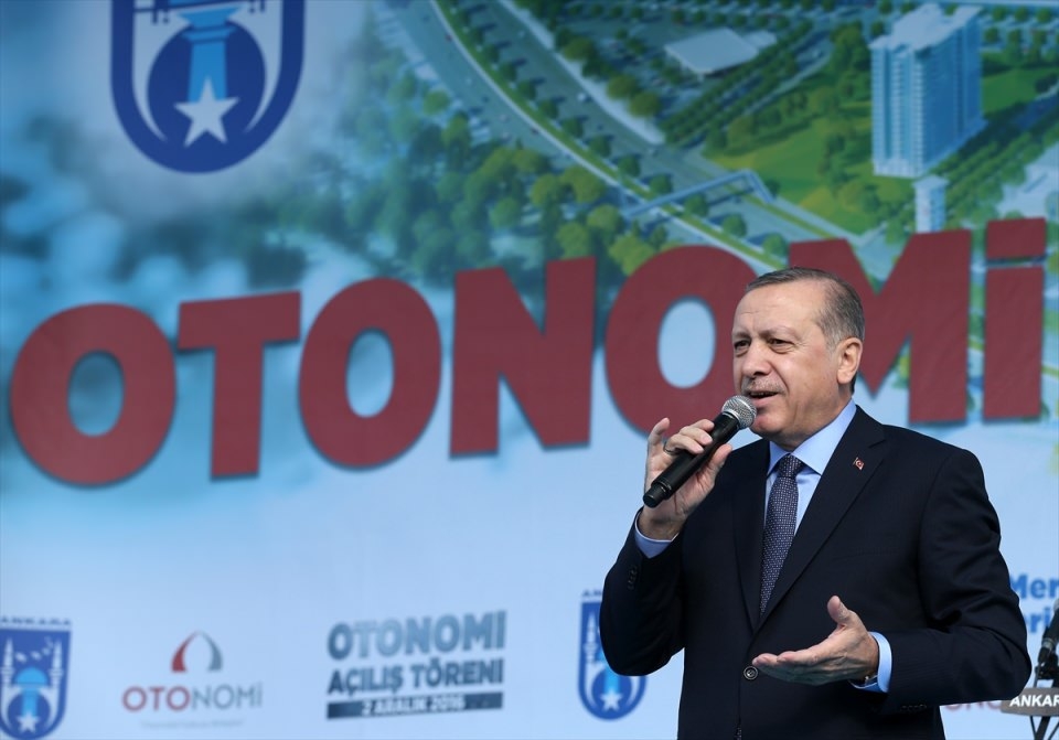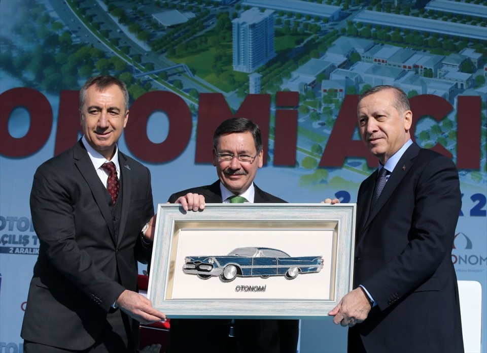 Cumhurbaşkanı Recep Tayyip Erdoğan, Ankara'nın Akyurt ilçesinde otomobil galerilerinin bulunduğu OTONOMİ'nin açılış törenine katıldı.