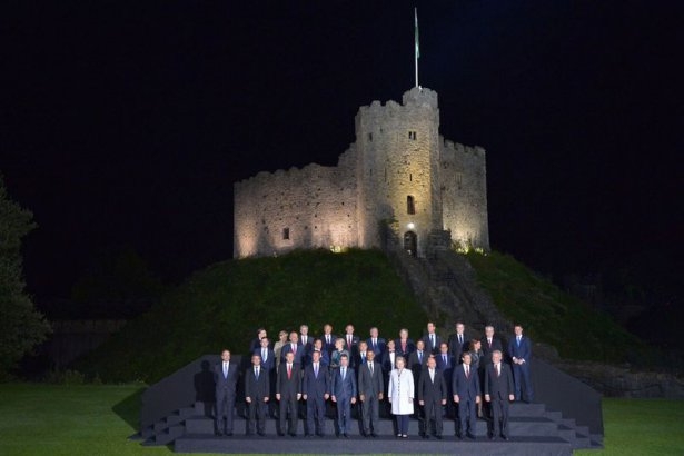 Liderleri, yemeğe gelişlerinde, İngiltere Başbakan David Cameron ve Galler bölgesel hükümetinin Başbakanı Carwyn Jones karşıladı.