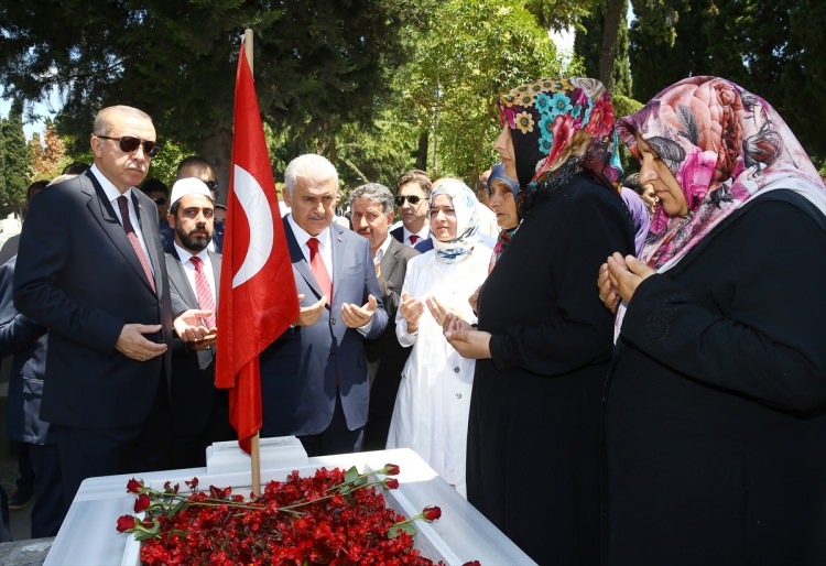 Cumhurbaşkanı Recep Tayyip Erdoğan ve Başbakan Binali Yıldırım, Edirnekapı'daki 15 Temmuz Şehitliğine ziyarette bulunuyor.