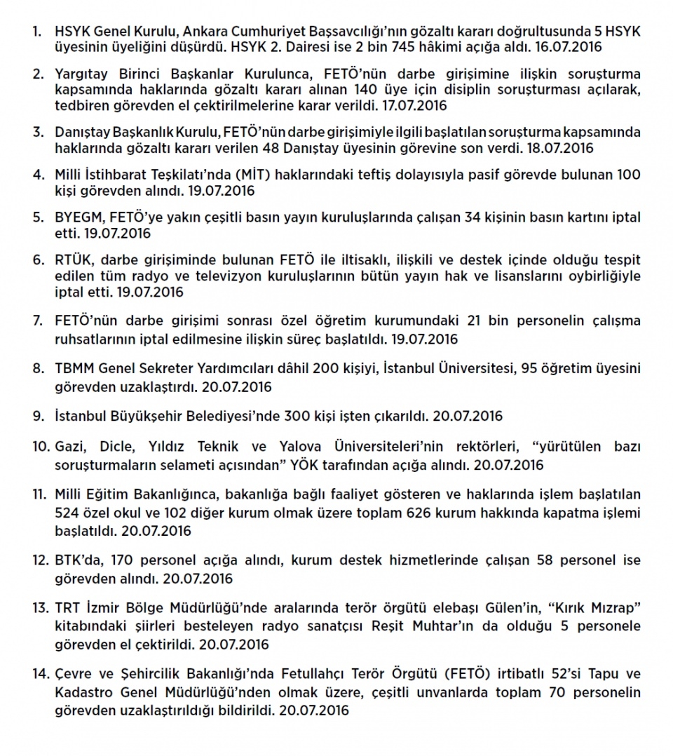 16 Temmuz Cumartesi / 07:50 Fetullahçı Terör Örgütü üyesi 29 albay ve 5 general, İçişleri Bakanı Efkan Ala tarafından görevden uzaklaştırıldı.